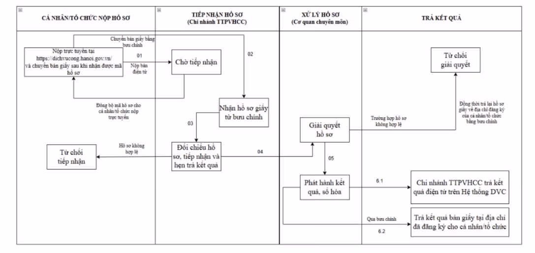 Sau khi cơ quan chuyên môn phát hành kết quả, kết quả điện tử sẽ trả về Chi nhánh Trung tâm Phục vụ hành chính công để trả về tài khoản cho cá nhân/tổ chức; kết quả bản giấy sẽ được chuyển thẳng từ cơ quan chuyên môn đến địa chỉ đã đăng ký của cá nhân/tổ chức bằng bưu chính. Chi phí chuyển trả kết quả được thực hiện theo Nghị quyết số 39/2024/NQHĐND ngày 10 tháng 12 năm 2024 của Hội đồng nhân dân thành phố Hà Nội (hoặc do tổ chức tự thuê dịch vụ bưu chính riêng).