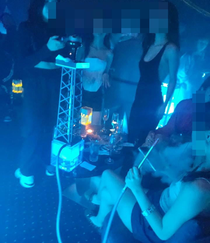 Tại đây, khách hàng được sử dụng rượu mạnh, shisha... Sau màn chào hỏi, các nhân viên gác cửa nhanh chóng sắp xếp cho khách được vào trong, khi đi qua quầy thu ngân, hiện lên trước mắt là dàn đèn led nhiều màu sắc nháy và xoay liên tục. Nhạc đập chát chúa và hàng chục khách hàng đang lắc lư theo nhạc cùng các ly đồ uống có cồn và ống hút shisha trên tay.