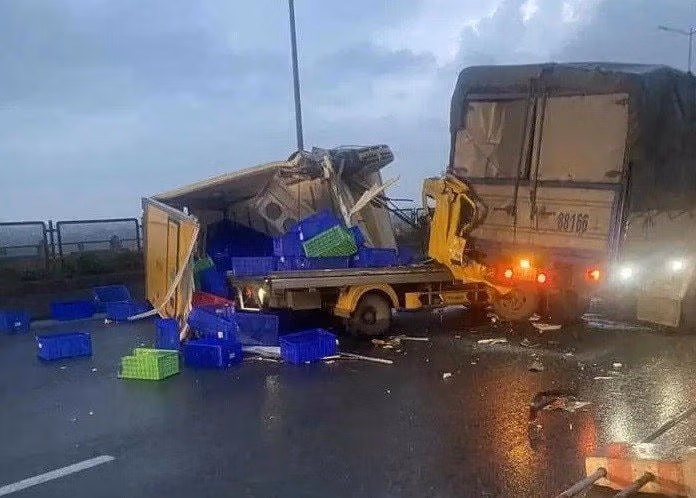 Chỉ huy Đội CSGT đường bộ số 14 (Phòng CSGT Hà Nội) cho biết, lúc 5h10 cùng ngày, tại Km164+700 trên cầu Thanh Trì (hướng Hoàng Mai đi Gia Lâm) xảy ra vụ tai nạn giao thông giữa hai ô tô tải.