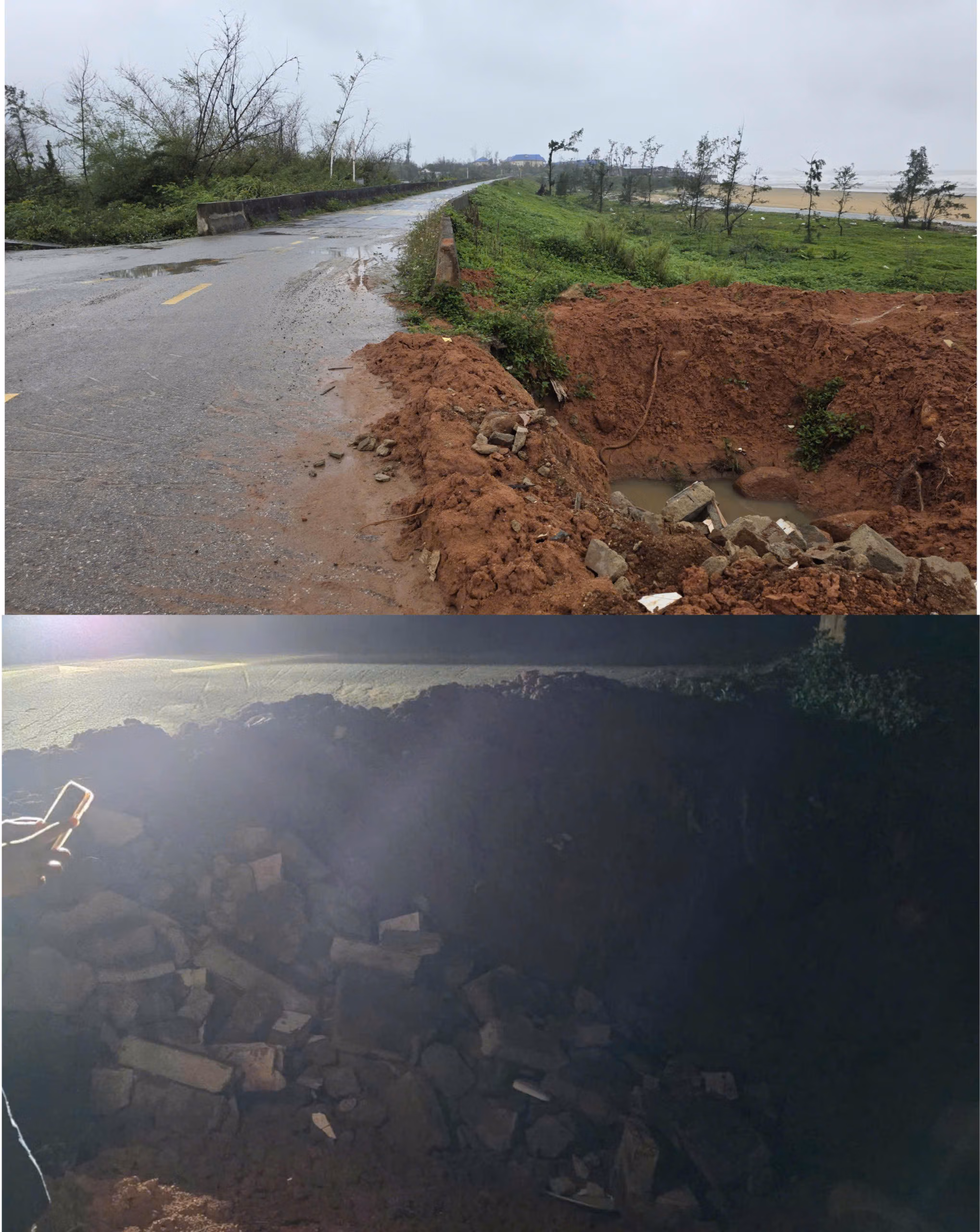 Anh L. cho biết, con đường mình lưu thông là con đường rộng, thoáng nhưng lại không đặt các biển báo hiệu, cảnh báo. Tại khu vực này, lưu lượng người tham gia rất đông nhưng khi trời tối không có điện đường chiếu sáng, cũng không đặt biển, dây phản quang, đèn tín hiệu... cảnh báo. Theo nhận định, chia sẻ của những người dân tại địa bàn, nơi đây là nơi đã có đơn vị thi công đổ thải công trình trái phép. “Khu vực đổ đất của bãi thải đổ sai quy định. Đất thải được đổ trực tiếp ra bãi bồi cạnh biển. Đơn vị đã phá lớp chắn của kè an toàn đường quốc phòng ven biển, đổ đất ra biển. Vì vậy, khi chạy xe buổi tối nhìn giống như con đường nối thẳng nên tôi mới bị tai nạn”, anh L. bức xúc nói.