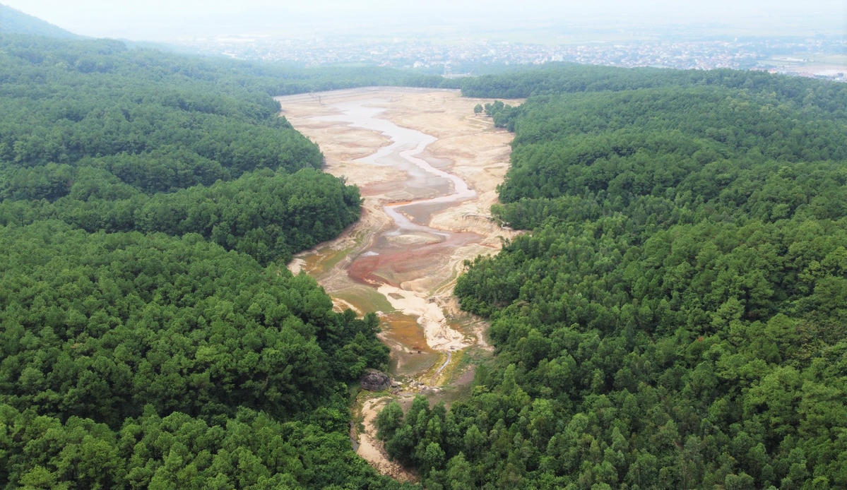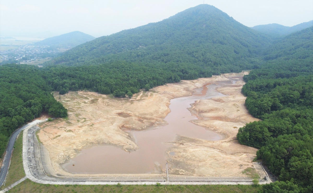 Nắng nóng kéo dài, lượng mưa thấp khiến hồ chứa nước sinh hoạt Thiên Tượng (phường Bắc Hồng, thị xã Hồng Lĩnh, tỉnh Hà Tĩnh) cạn trơ đáy. Thiếu nước, cơ quan chức năng huy động xe chuyên dụng chở nước đến tận khu dân cư cấp cho người dân.