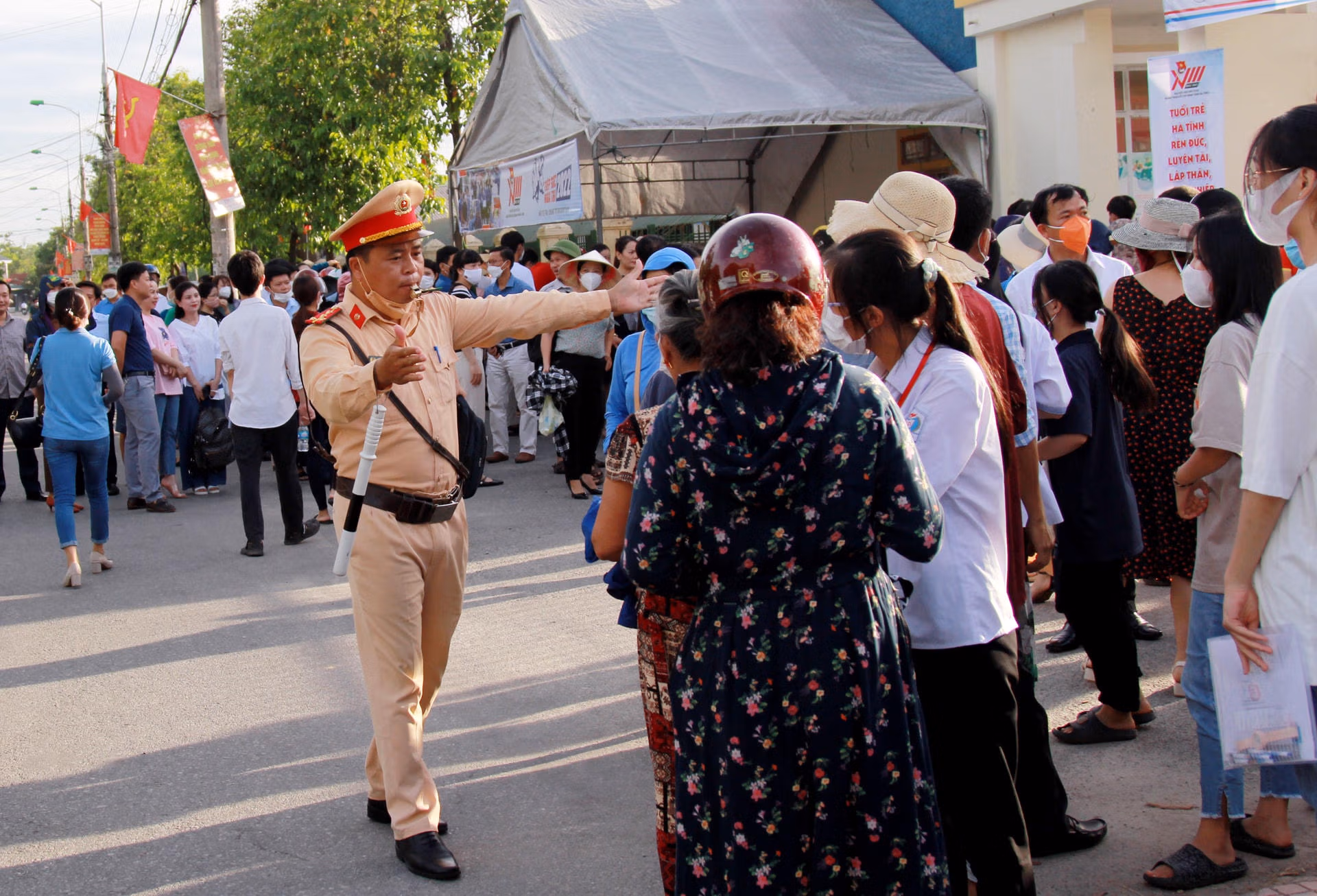 Nhằm đảm bảo an toàn và tạo mọi điều kiện cho phụ huynh và học sinh, Công an thành phố Hà Tĩnh đã kịp thời phối hợp phân luồng và hướng dẫn người tham gia giao thông, thông tuyến nhanh và an toàn nhất.