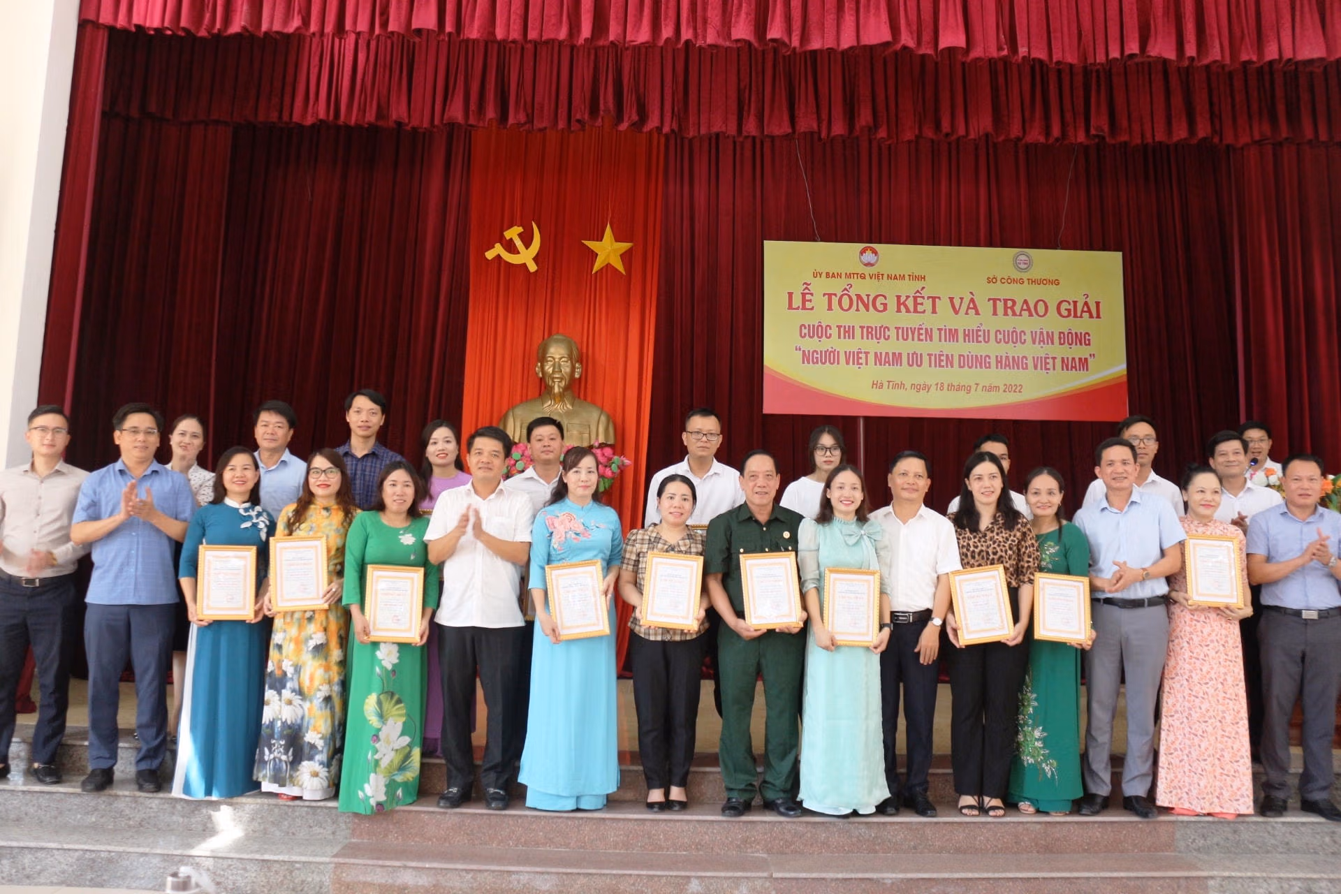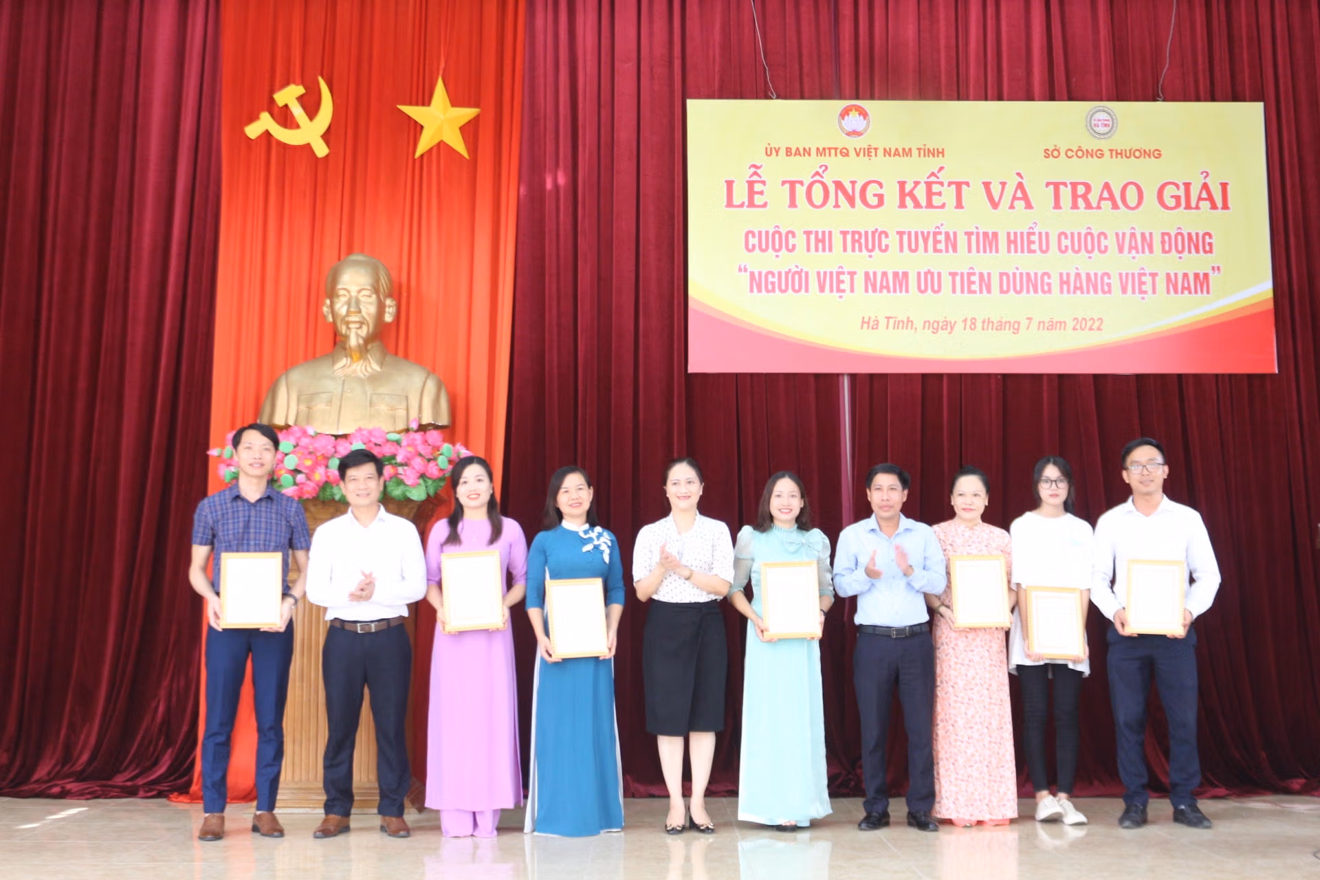Chiều 18/7, Ủy ban MTTQ Việt Nam tỉnh Hà Tĩnh phối hợp Sở Công thương Hà Tĩnh tổ chức Lễ tổng kết và trao giải cuộc thi trực tuyến tìm hiểu cuộc vận động “Người Việt nam ưu tiên dùng hàng Việt Nam”.