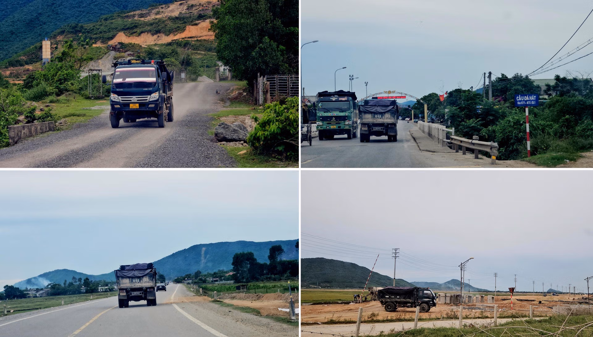 Sáng 22/9, để ghi nhận lộ trình di chuyển, PV đã bám theo 2 xe tải cùng gắn biển tên Cty 179 mang BKS 73H-005.05 và 73C-076.64. Sau khi “ăn” no đất ở mỏ đá, 2 chiếc xe tải này chạy xuống đường tránh thị xã Kỳ Anh đoạn qua cầu Khe Lau rồi rẽ theo hướng đường Nguyễn Du để ra QL1A.