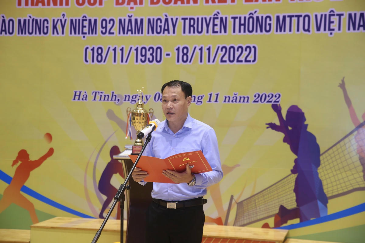 Phát biểu khai mạc giải đấu, ông Thái Ngọc Hải, Phó Chủ tịch Thường trực Ủy ban MTTQ Việt Nam tỉnh Hà Tĩnh cho biết, sau khi dịch Covid-19 cơ bản được đẩy lùi, được sự đồng ý của lãnh đạo các cơ quan trong khối, sự nhiệt tình hưởng ứng của cơ sở, Ủy ban MTTQ và các đoàn thể chính trị - xã hội tỉnh tổ chức giải bóng chuyền hơi nam nữ tranh cúp “Đại đoàn kết” lần thứ nhất.