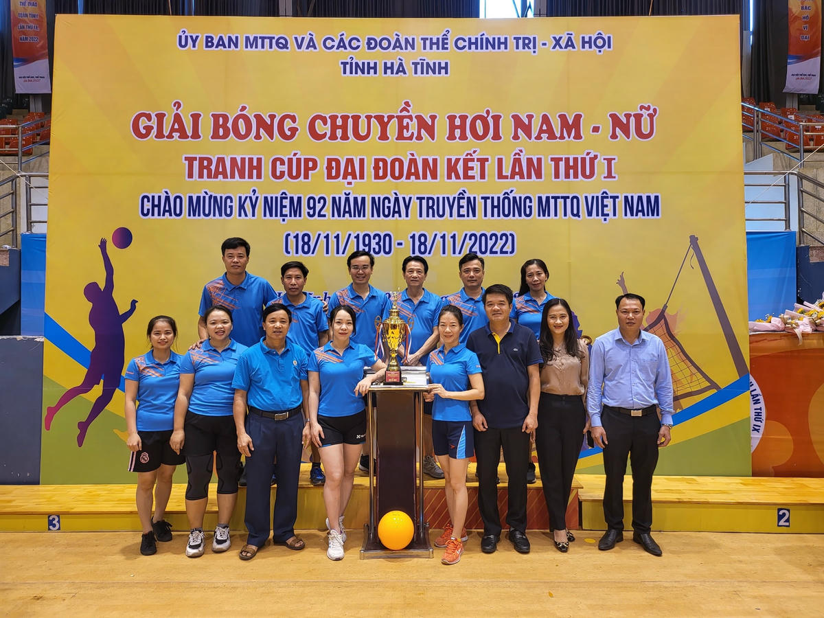 Hướng tới kỷ niệm 92 năm Ngày truyền thốmg MTTQ Việt Nam (18/11/1930 - 18/11/2022), Ngày hội Đại đoàn kết toàn dân tộc năm 2022, sáng 5/11, Ủy ban MTTQ Việt Nam tỉnh Hà Tĩnh phối hợp với các tổ chức chính trị - xã hội tỉnh tổ chức giải bóng chuyền hơi nam - nữ tranh cúp “Đại đoàn kết” lần thứ I.