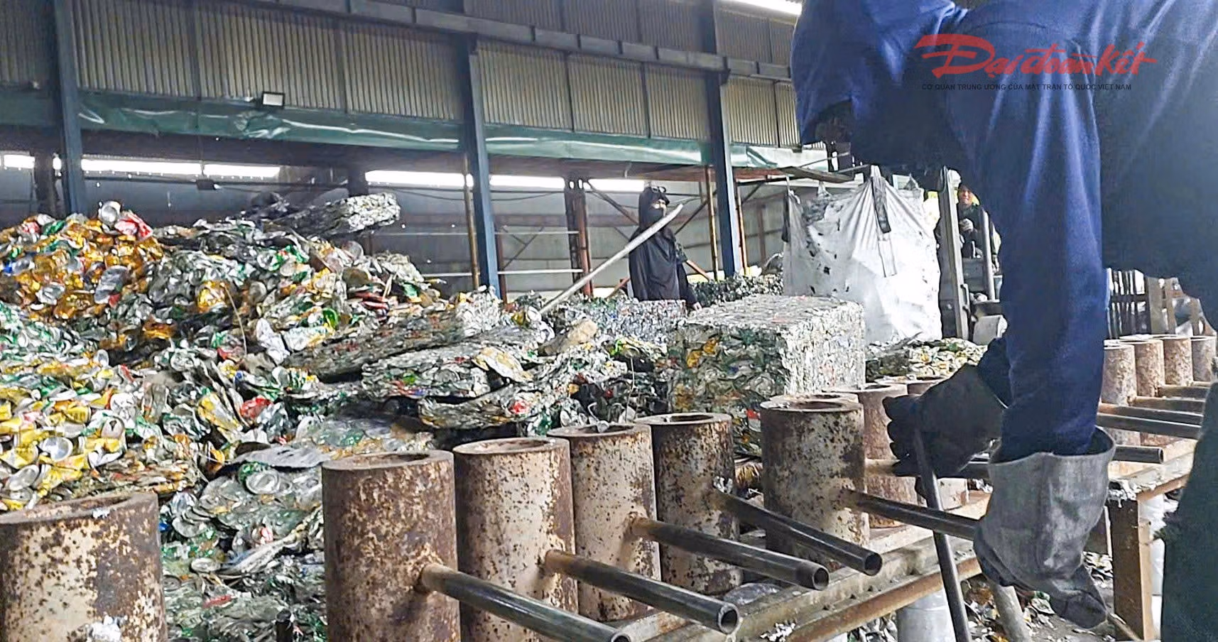 Trên mặt đất của các nhà xưởng, vỏ lon bia rơi vãi, nằm la liệt trên mặt đất, lấm lem bụi bẩn. Bên trong, hàng chục công nhân trùm kín mặt, một số người ra sức xúc than đổ vào 4 lò đốt lửa để nấu, đúc nhôm, bụi than bay mù mịt. Một số công nhân khác đang vất vả tháo khuôn, đổ nhôm đã đúc ra rồi vận chuyển đến điểm chứa hàng thành phẩm.