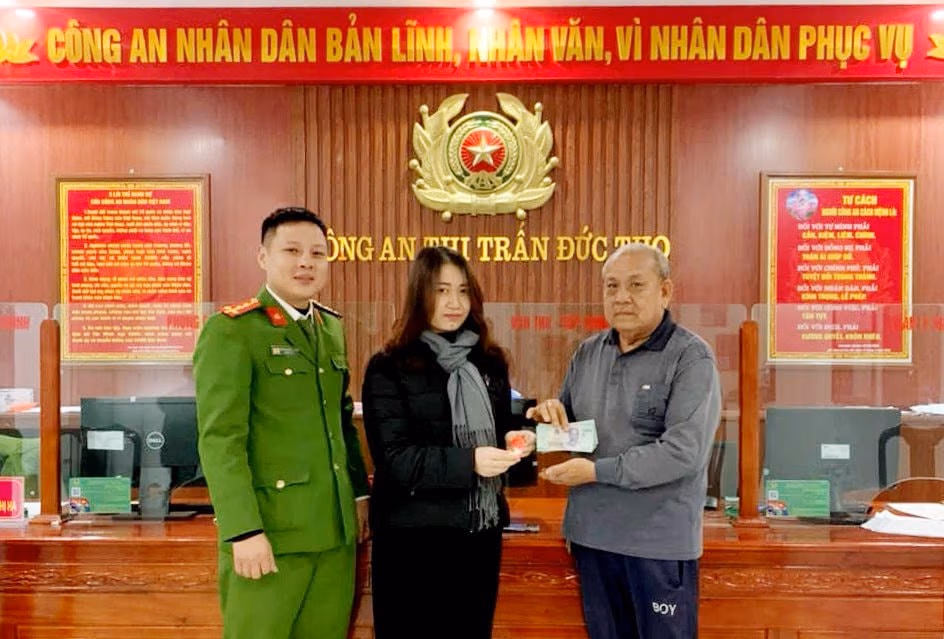 Ngày 27/12, nguồn tin từ Công an thị trấn Đức Thọ (huyện Đức Thọ, tỉnh Hà Tĩnh), đơn vị vừa phối hợp với chị Nguyễn Thị Thuý Vân (23 tuổi, trú tại tổ dân phố Tân Định, thị trấn Đức Thọ) hoàn tất thủ tục và trao trả lại tài sản cho người đánh rơi.