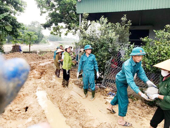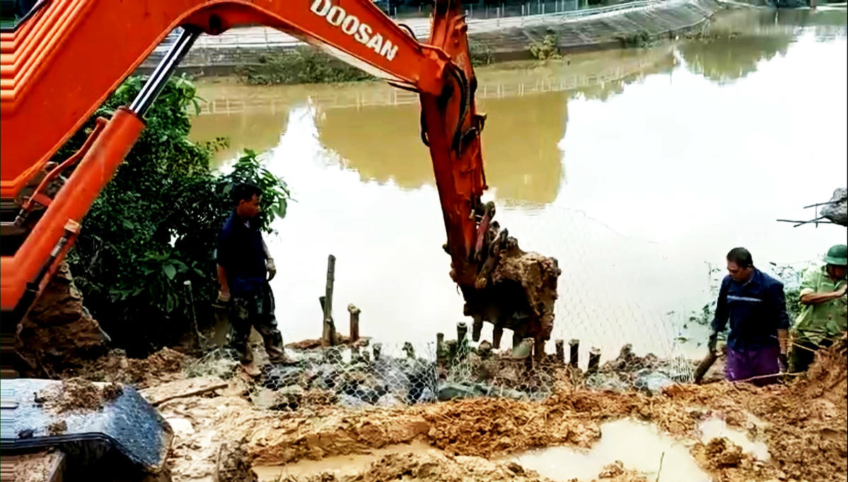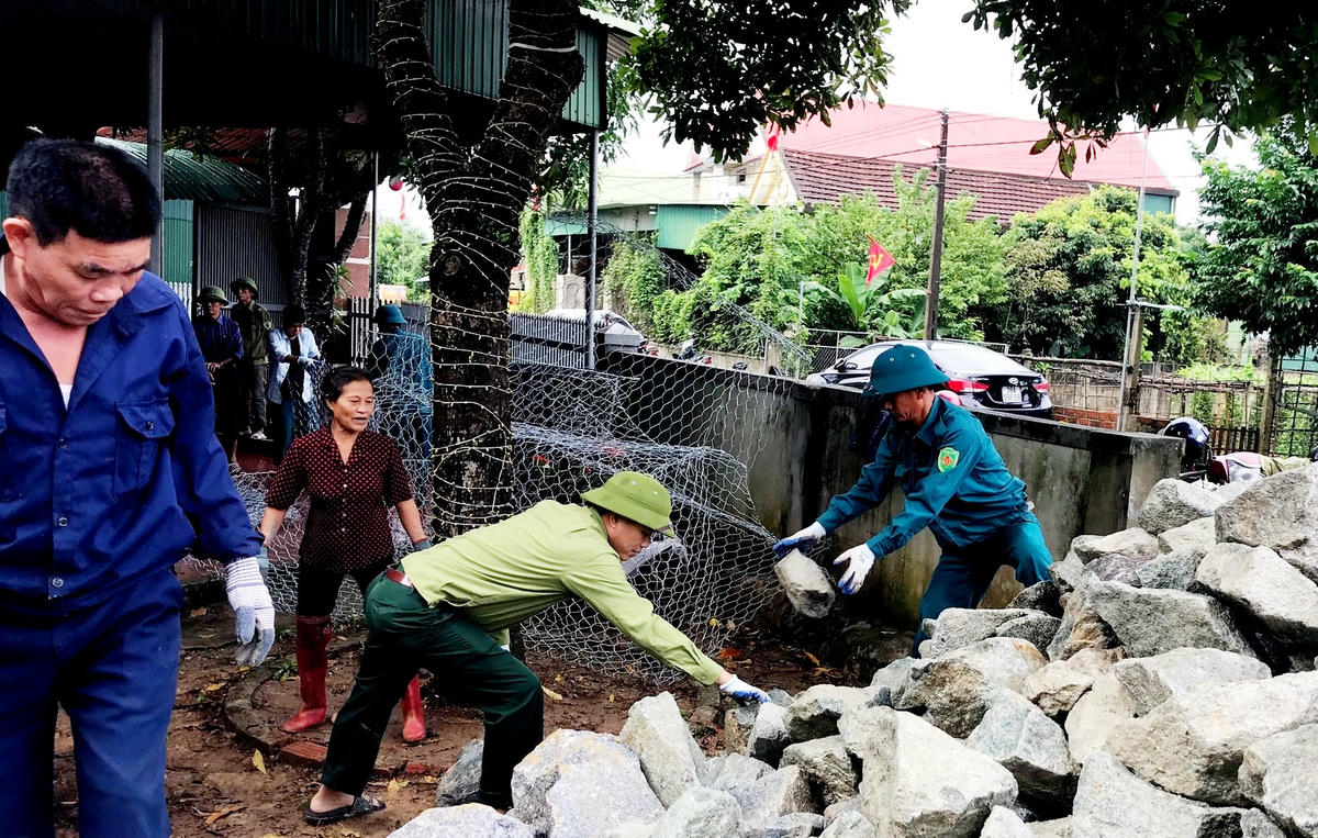 Trước tình trạng sạt lở nghiêm trọng, chính quyền địa phương đã huy động hơn 200 người là lực lượng công an, dân quân tự vệ và các tổ chức đoàn thể trên địa bàn tham gia gia cố.