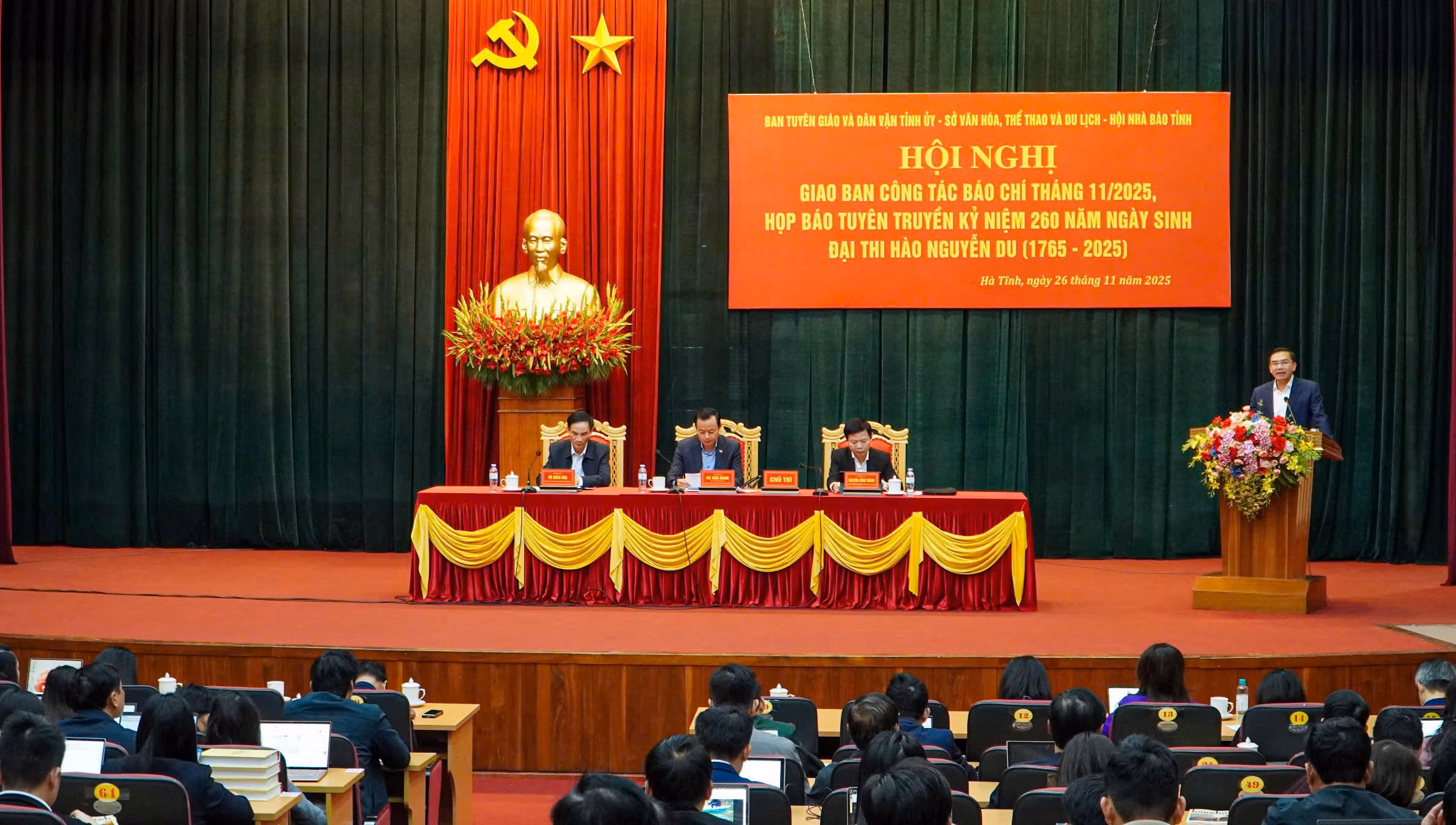 Sáng 26/11, Ban Tuyên giáo và Dân vận Tỉnh ủy phối hợp với các đơn vị liên quan tổ chức hội nghị giao ban báo chí tháng 11/2025 và họp báo về kế hoạch tuyên truyền kỷ niệm 260 năm Ngày sinh Đại thi hào Nguyễn Du (1765–2025).