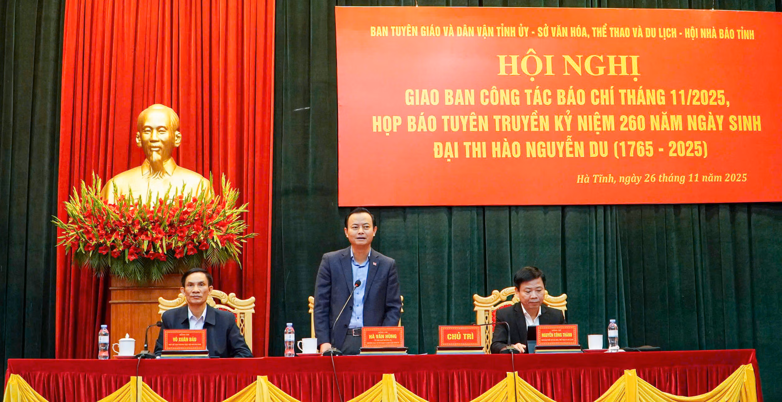 Tại hội nghị giao ban báo chí tháng 11 và họp báo kế hoạch tuyên truyền sự kiện 260 năm Ngày sinh Đại thi hào Nguyễn Du, Trưởng ban Tuyên giáo và Dân vận Tỉnh ủy Hà Tĩnh Hà Văn Hùng đề nghị các cơ quan báo chí đẩy mạnh truyền thông chuyên sâu, bảo đảm tính liên tục và gắn kết với nhiệm vụ chính trị của tỉnh.