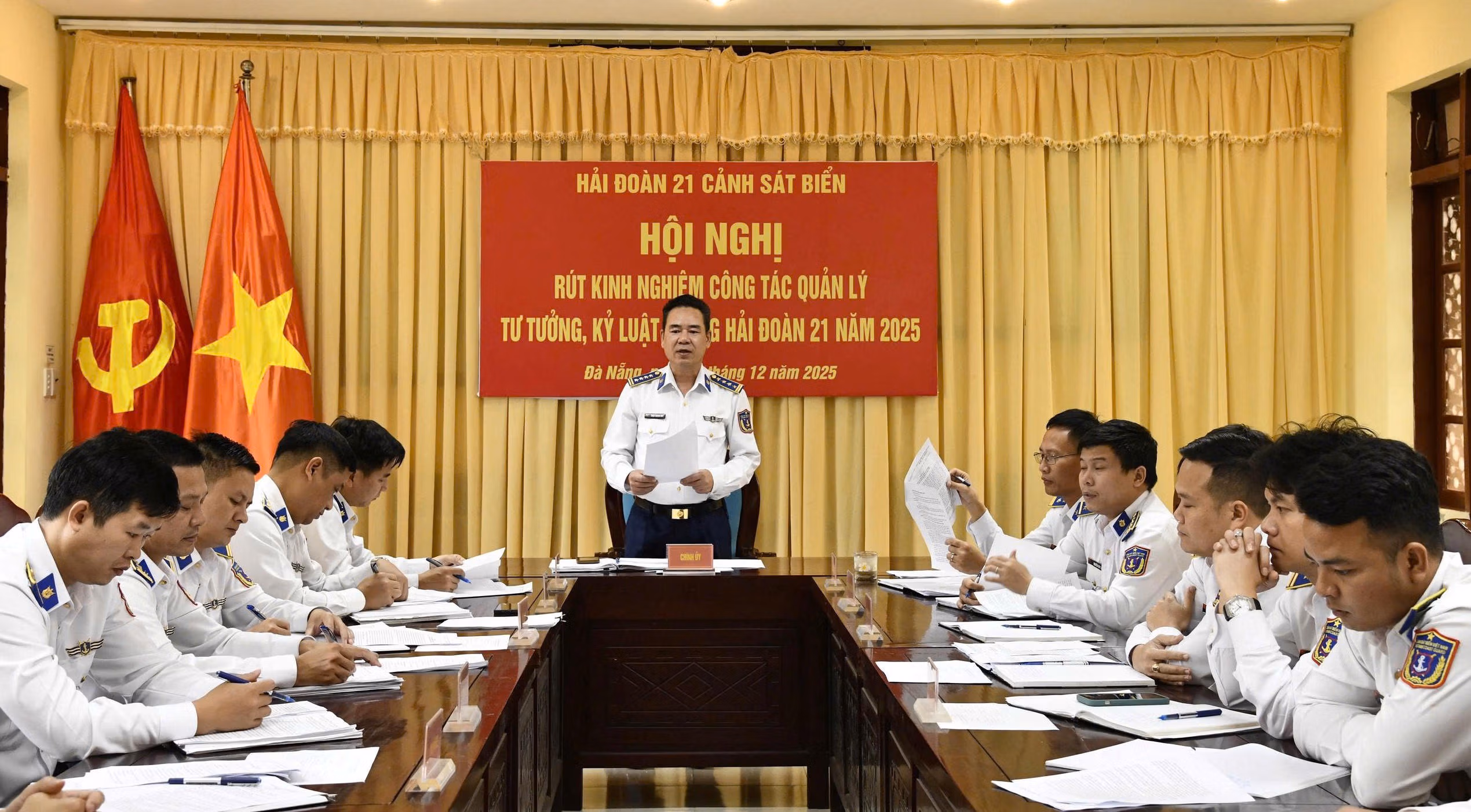 Tại hội nghị, các đại biểu đã quán triệt Kết luận của Bộ Tư lệnh Vùng Cảnh sát biển 2 về công tác quản lý tư tưởng, kỷ luật năm 2025; đồng thời nghe báo cáo rút kinh nghiệm của Hải đoàn 21.