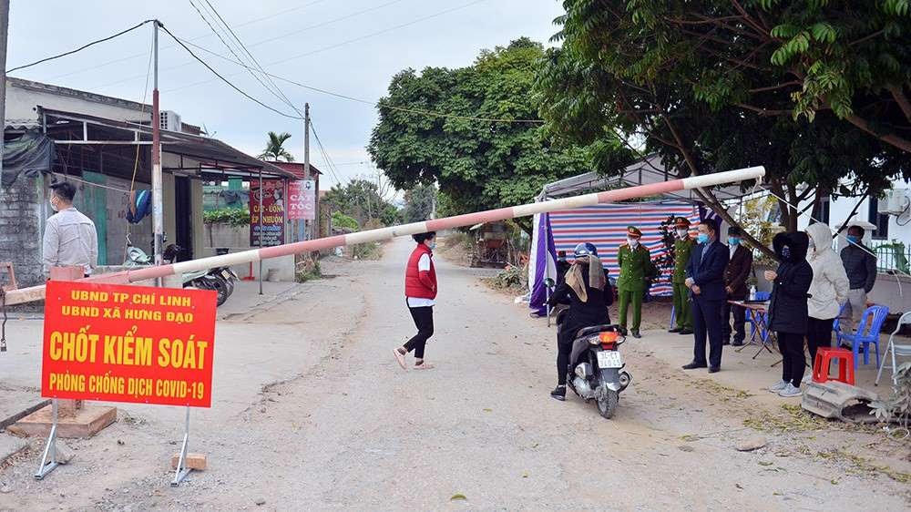 Lực lượng chức năng tỉnh Hải Dương đã lập 13 chốt kiểm soát, phong tỏa thôn Kim Điền và thực hiện giãn cách xã hội các thôn thuộc xã Hưng Đạo, TP Chí Linh có liên quan 2 ca mắc COVID-19 tại địa phương này.