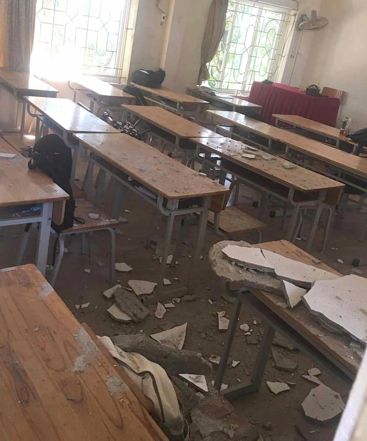 Hai học sinh bị vữa trần rơi trúng tại lớp học