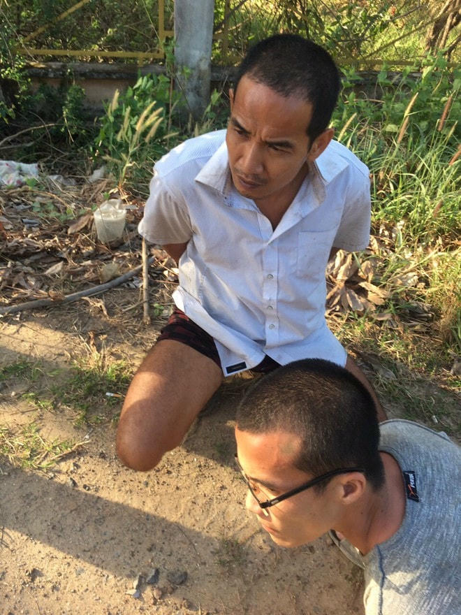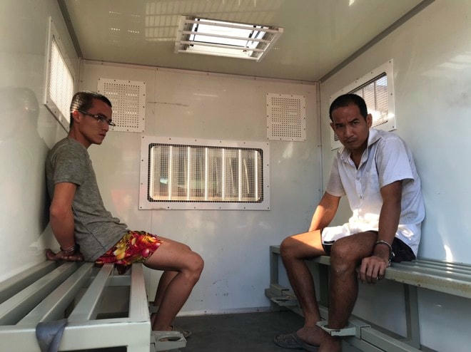 Lâm Viết Phú Lộc (trái) và Bùi Nguyễn Thiên Thuận (phải) bị bắt giữ. Ảnh: Giang Phương.