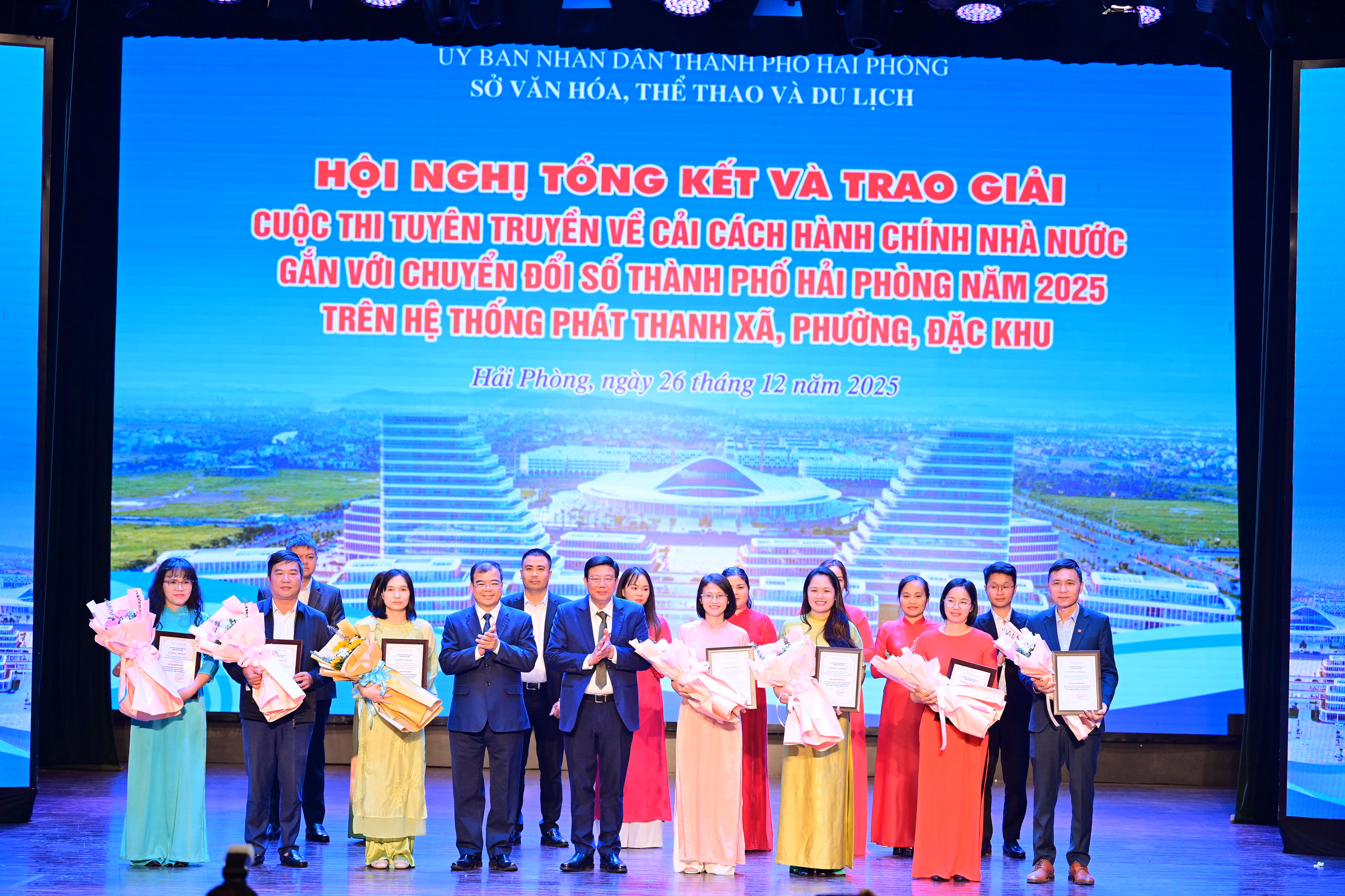 Ngày 26/12/2025, Sở Văn hóa, Thể thao và Du lịch TP Hải Phòng tổ chức trao giải Cuộc thi tuyên truyền về cải cách hành chính nhà nước gắn với chuyển đổi số TP Hải Phòng năm 2025 trên hệ thống phát thanh xã, phường, đặc khu.