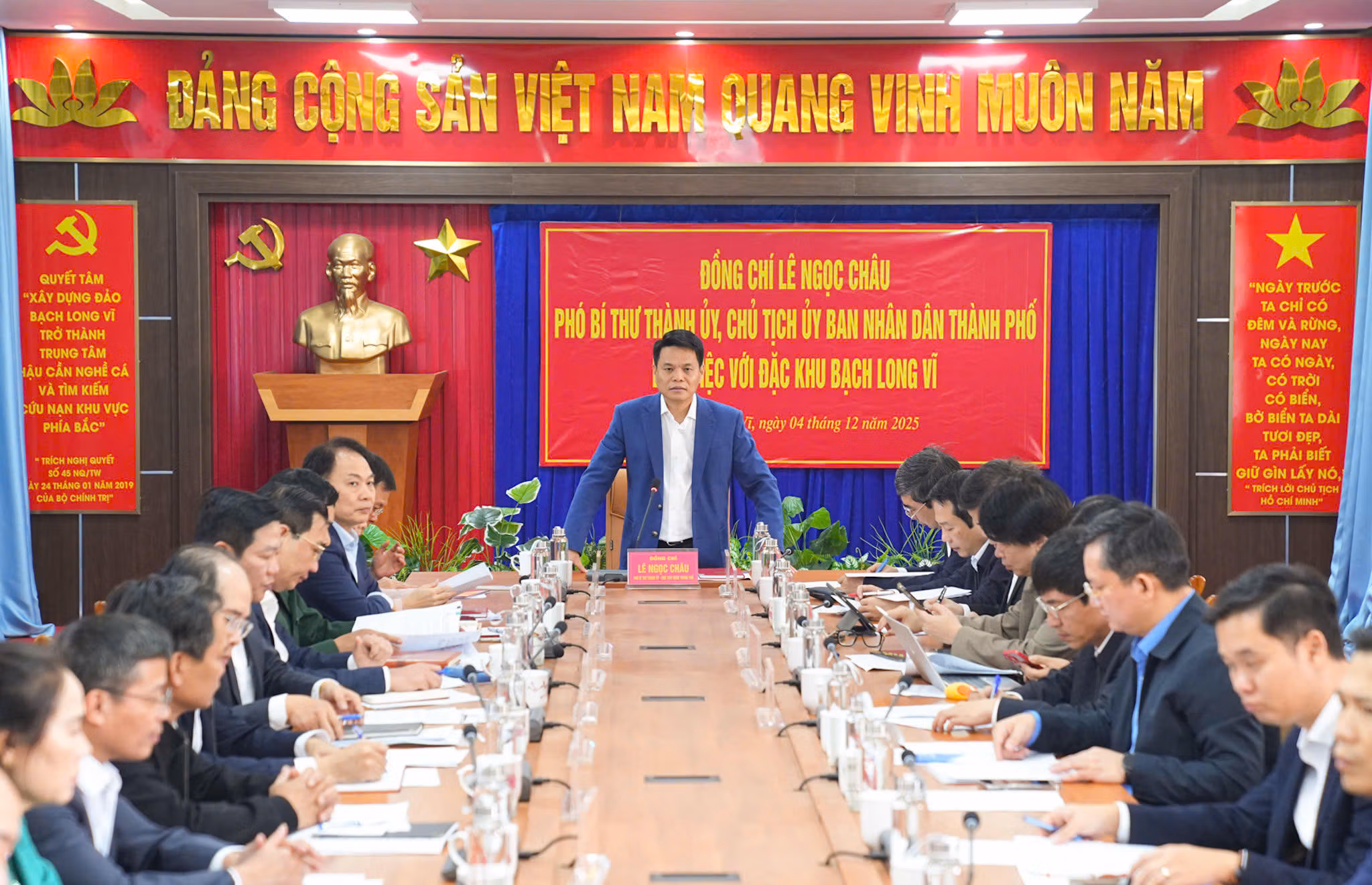 Tại buổi làm việc, Chủ tịch UBND thành phố Lê Ngọc Châu khẳng định Bạch Long Vĩ đã chuyển mình mạnh mẽ, từ làng chài gần như không có hạ tầng dân sinh thành địa cực phát triển của miền Bắc Bộ. Tuy nhiên, bên cạnh các thuận lợi, Bạch Long Vĩ vẫn đối mặt với những khó khăn liên quan đến vị trí địa lý, điều kiện tự nhiên, và đặc biệt là việc chưa khắc phục triệt để hậu quả thiên tai cũng như tình trạng kéo dài thời gian thực hiện một số công trình đầu tư.