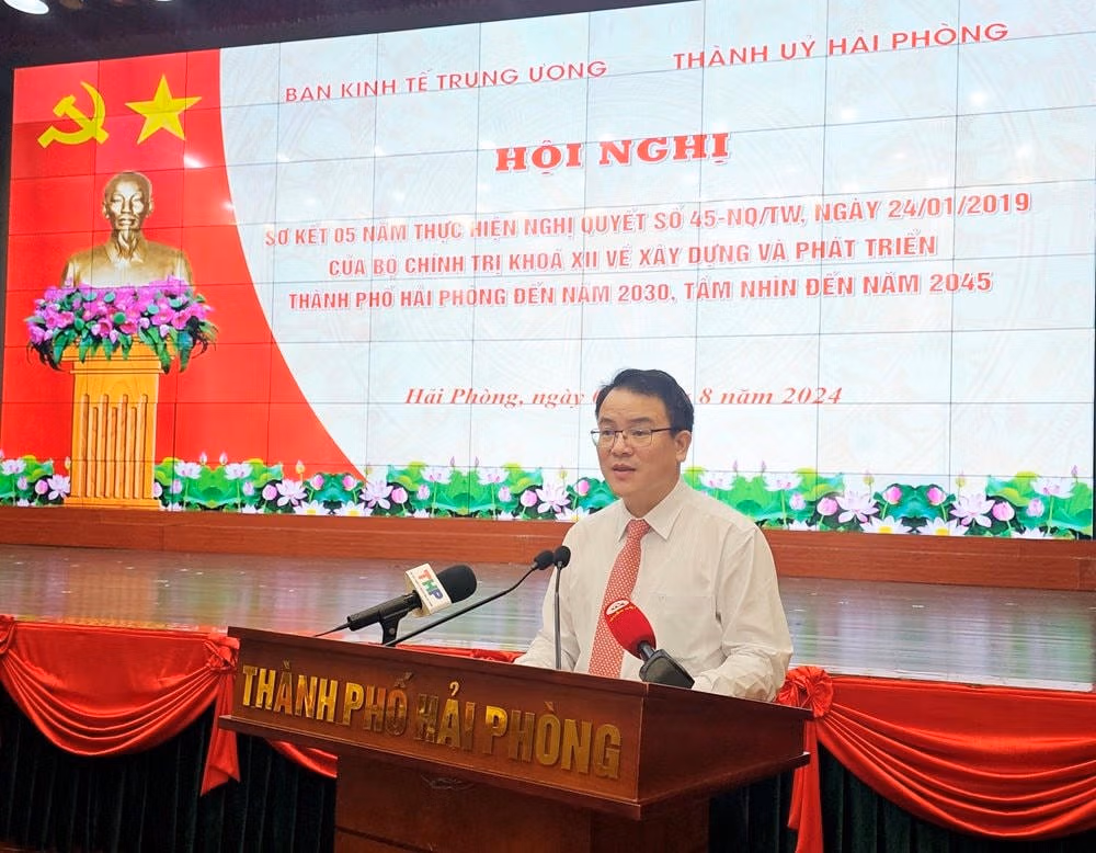Tại hội nghị, ông Nguyễn Hồng Sơn, Phó Trưởng ban Ban Kinh tế Trung ương nhấn mạnh: Sau 5 năm triển khai Nghị quyết số 45-NQ/TW ngày 24/1/2019 của Bộ Chính trị (gọi tắt là Nghị quyết 45), nhiều kế hoạch, chương trình, đề án được ban hành; nhiều nguồn lực được bố trí để triển khai, nhất là các lĩnh vực mũi nhọn. Vai trò là trung tâm kinh tế - xã hội lớn của Hải Phòng đối với vùng Đồng bằng sông Hồng và cả nước tiếp tục được khẳng định.