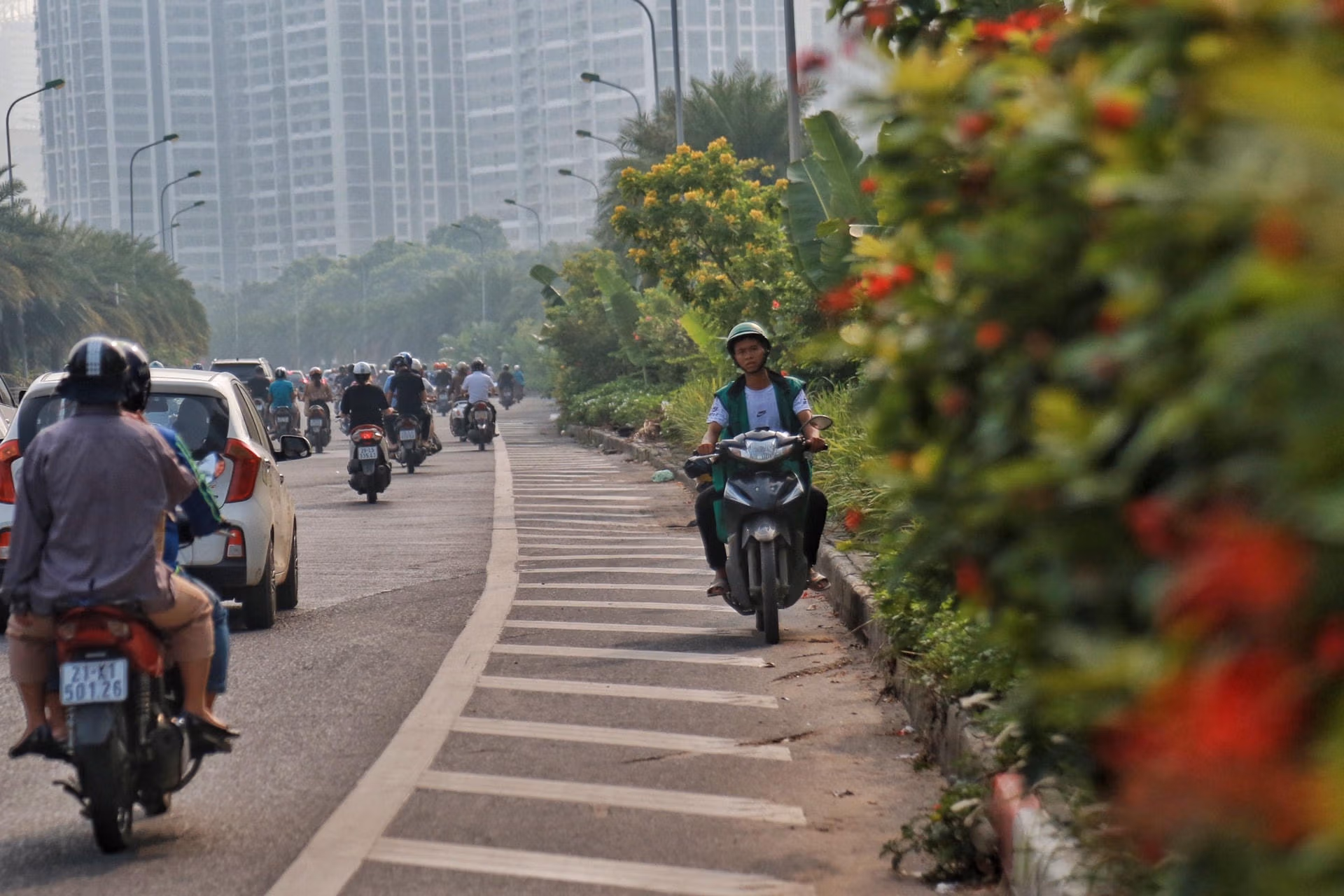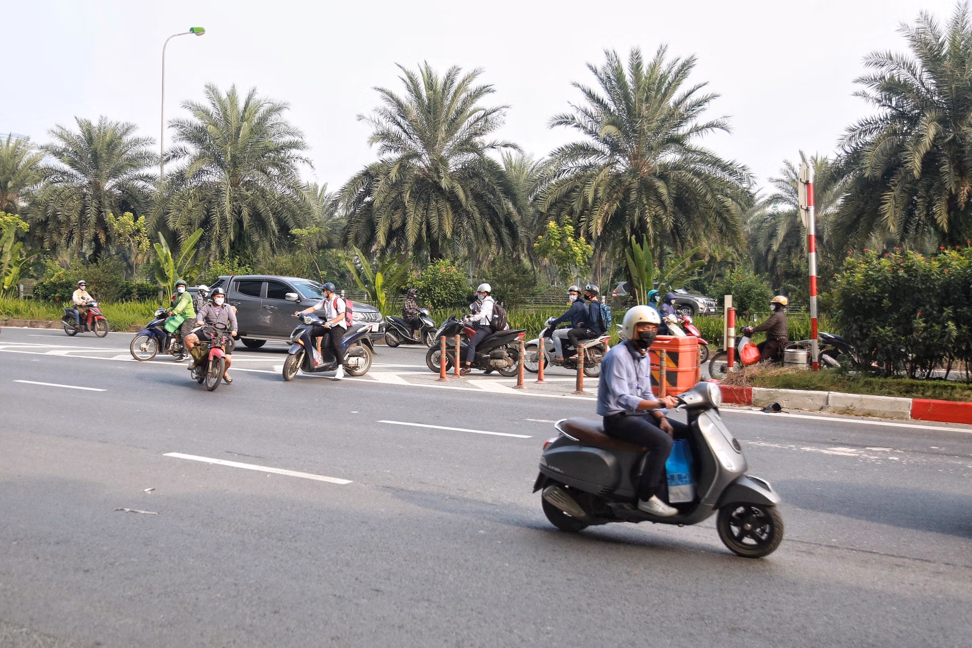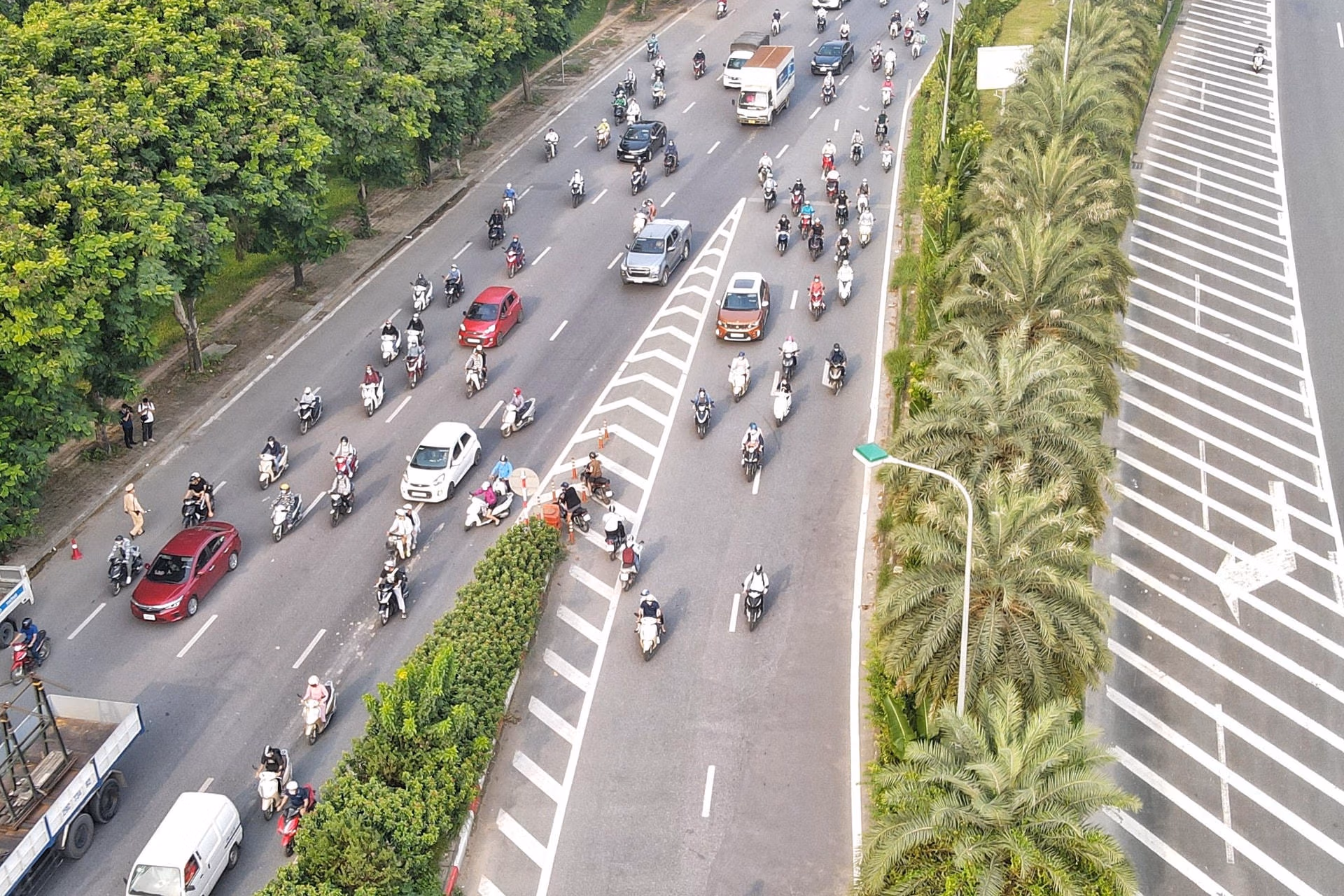 Hàng dài xe máy nối đuôi nhau đi ngược chiều tại khu vực gần hầm chui Trung Hòa