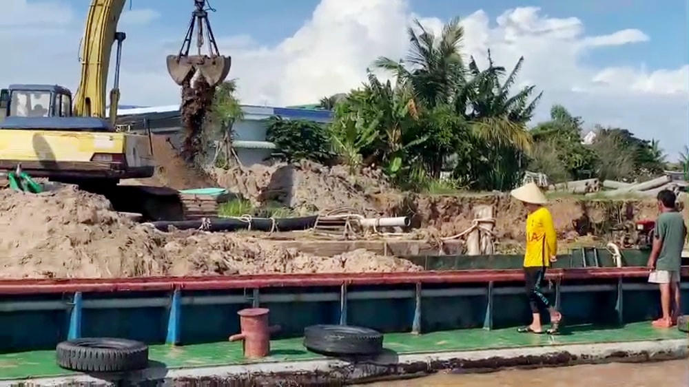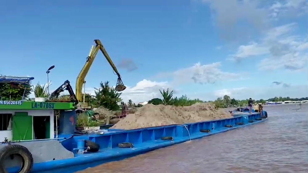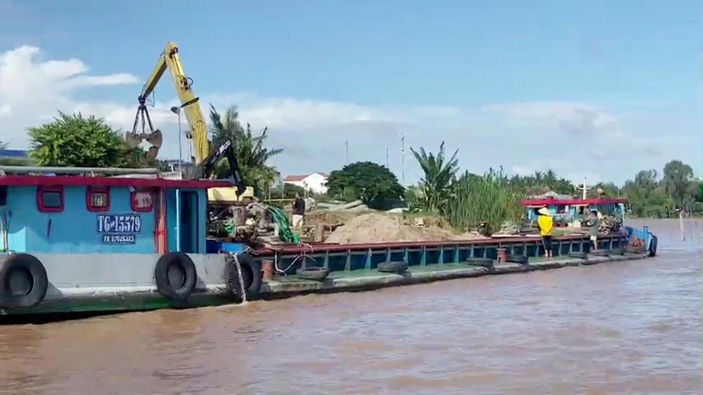 Hàng loạt sà lan vận chuyển cát trên sông Tiền bất ngờ bị buộc hạ tải