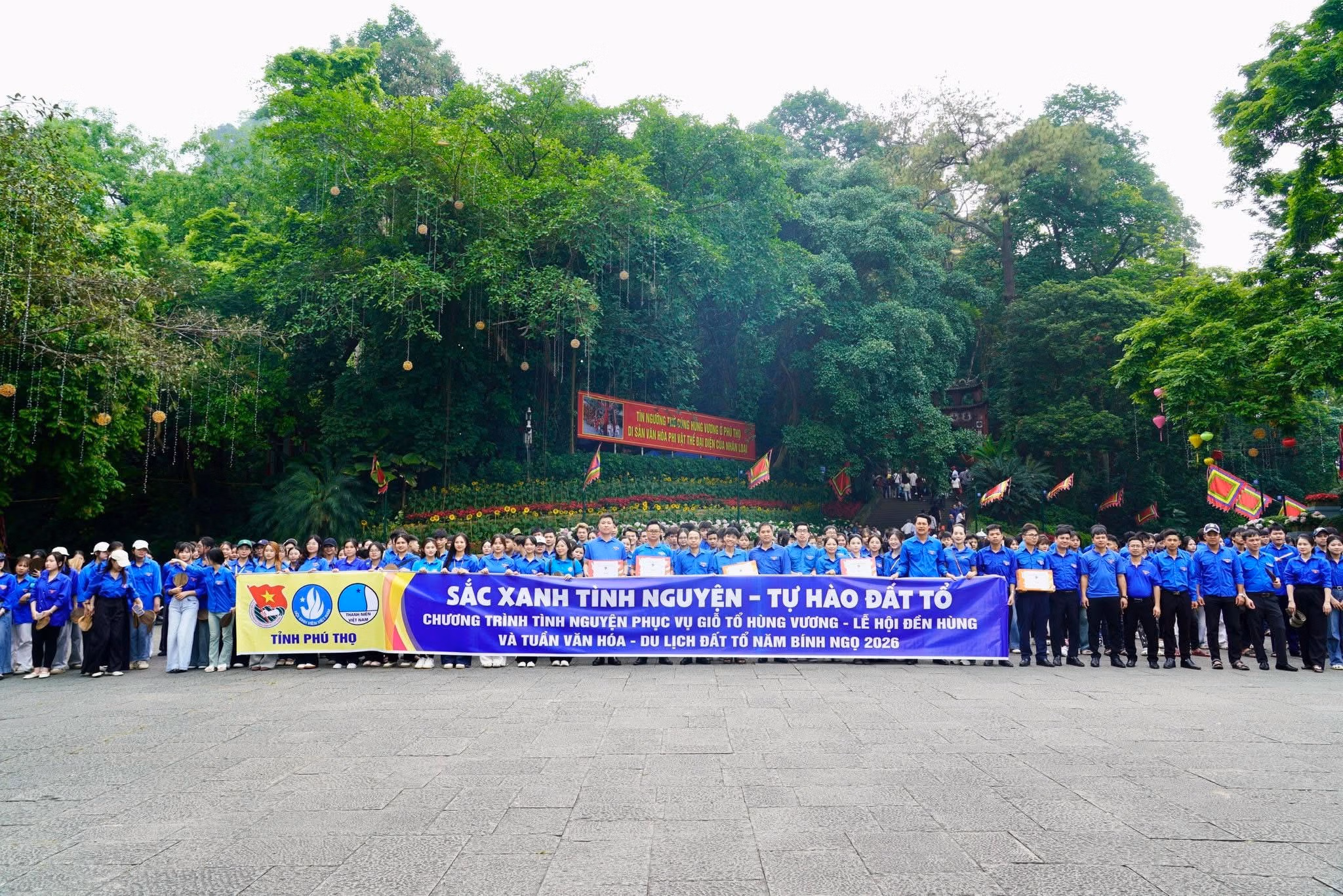 "Đền Hùng xanh", chương trình xung kích sẵn sàng của người trẻ Đất Tổ, đã khởi động những ngày qua với sự tham gia của hàng nghìn lượt đoàn viên, thanh niên tại Khu Di tích lịch sử Đền Hùng. Các bạn trẻ hỗ trợ du khách, cung cấp nước uống, tặng quạt mo cau, nhặt rác, và thường trực sẵn sàng tiếp ứng các lực lượng gìn giữ trật tự vì một Lễ hội lớn nhất cả nước.
