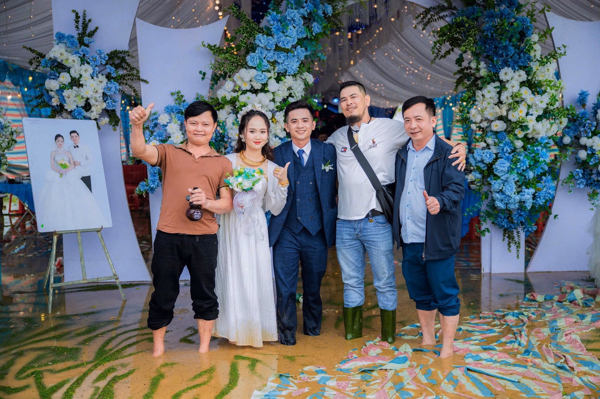 Hàng trăm khách mời 'xắn quần' lội qua dòng nước lũ để dự đám cưới