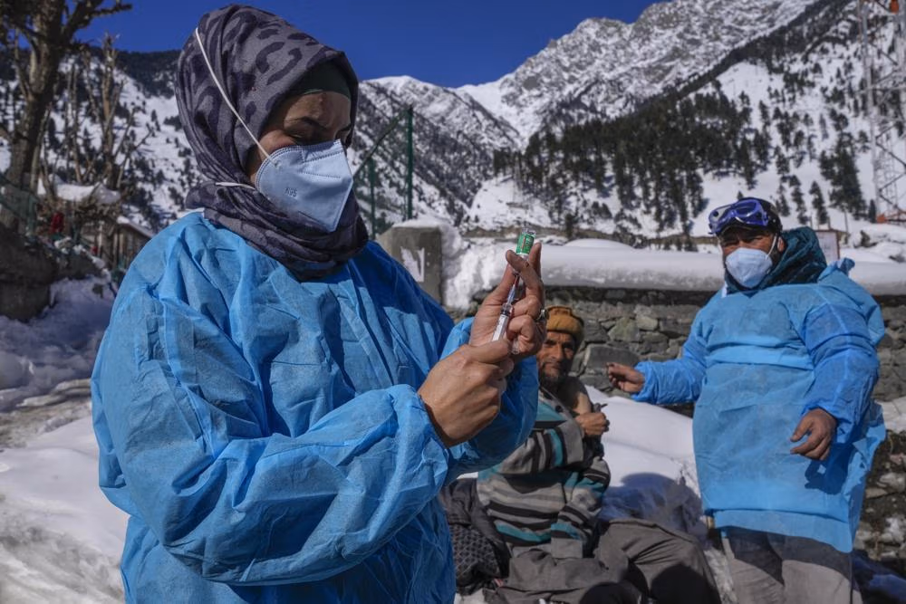 Những nhân viên y tế Ấn Độ đã đối diện với vô số thử thách, từ thiên nhiên đến con người, để mang vaccine đến những ngôi làng hẻo lánh trên vùng núi tuyết Kashmir.