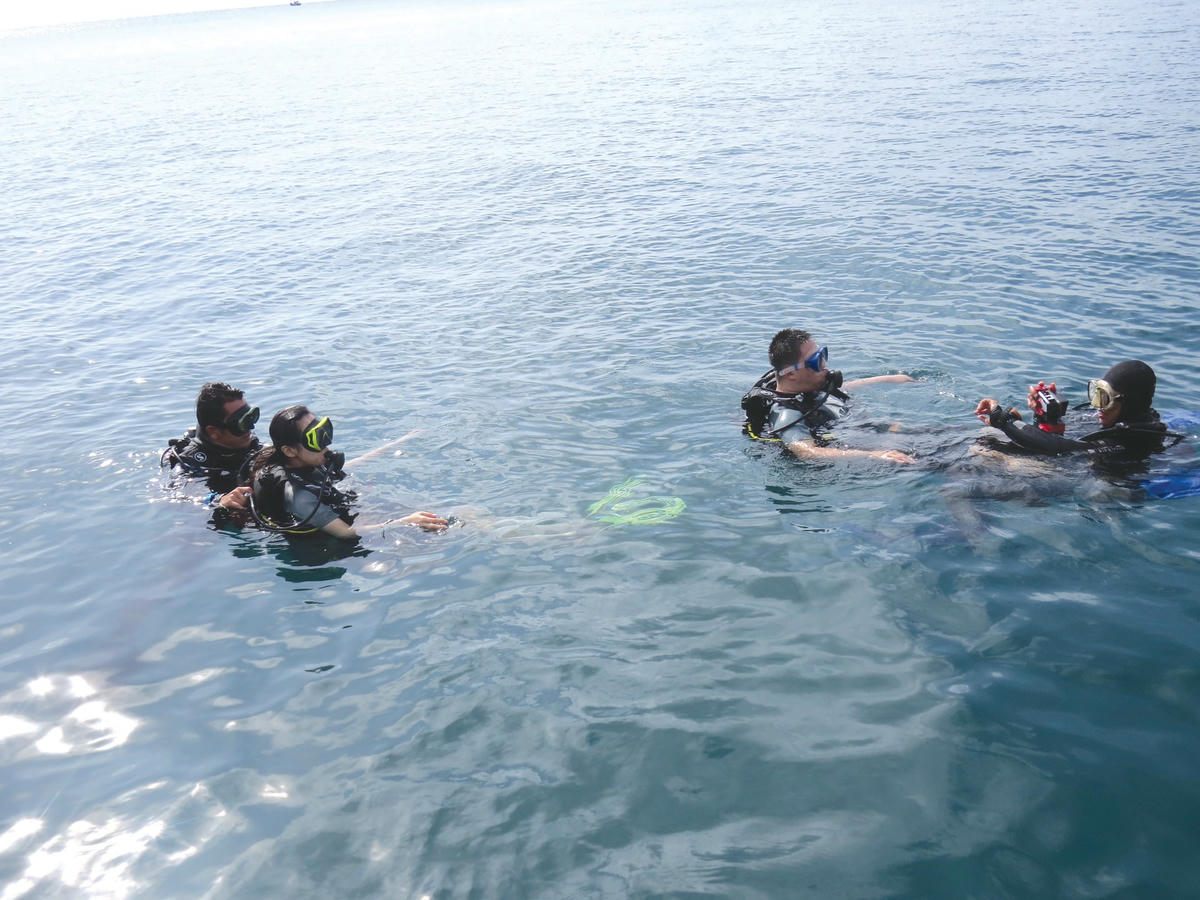 Chiếc ca nô nhỏ đưa tôi cùng nhóm bạn trẻ tới một khu vực quen thuộc nằm ở rìa vịnh Nha Trang (TP Nha Trang, Khánh Hòa) để bắt đầu một chuyến lặn biển. Từ lâu, khu vực này là một địa điểm quen thuộc của giới lặn biển trong và ngoài nước. Anh Nguyễn Thanh Hào (41 tuổi), huấn luyện kiêm hướng dẫn lặn biển của nhóm cho biết: Giờ là cuối mùa lặn biển, các bạn trẻ ở khắp nơi như TPHCM, Hà Nội hay tận Hàn Quốc, Nhật Bản đều tìm tới Nha Trang để lặn biển. Khu vực sắp tới là nơi có nhiều rạn san hô sinh sống. Những đáy biển có nhiều san hô thì thường kéo theo nhiều loại cá. Có những mùa cá về hàng đàn, lặn xuống nhìn rất đẹp.
