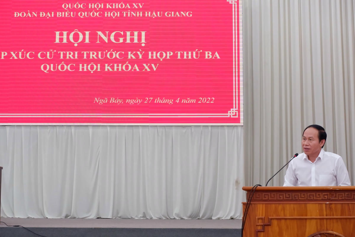 Phát biểu tại buổi tiếp xúc, thay mặt đoàn Đại biểu Quốc hội, Phó Trưởng đoàn phụ trách đoàn Đại biểu Quốc hội tỉnh Hậu Giang Lê Thị Thanh Lam báo cáo dự kiến chương trình kỳ họp thứ Ba, Quốc hội khoá XV. Đồng thời, thông báo kết quả trả lời ý kiến, phản ánh của của bà con cử tri trước và sau Kỳ họp thứ Hai trên nhiều lĩnh vực trước.