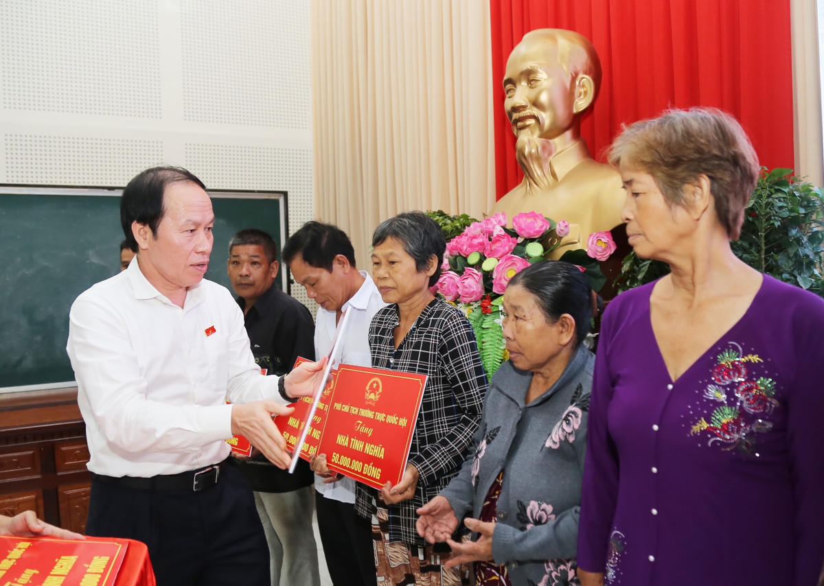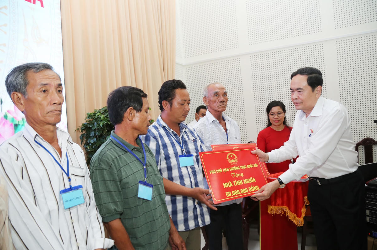 Phát biểu tại buổi trao quà, Phó Chủ tịch Thường trực Quốc hội Trần Thanh Mẫn bày tỏ sự xúc động khi nhắc đến những đóng góp, cống hiến của các gia đình chính sách, các thương binh, bệnh binh, người có công với cách mạng trong hai cuộc kháng chiến.