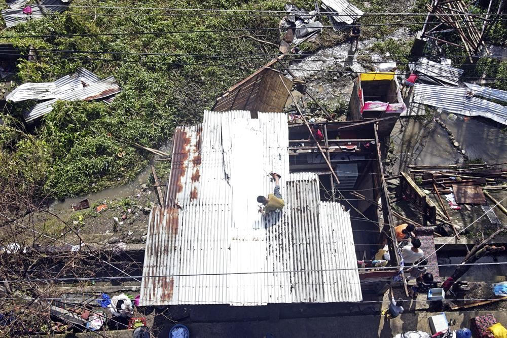 2: Người dân quay trở lại ngôi nhà bị tàn phá nặng nề do bão Rai của họ tại quần đảo Dinagat, miền nam Philippines. Ảnh: AP.