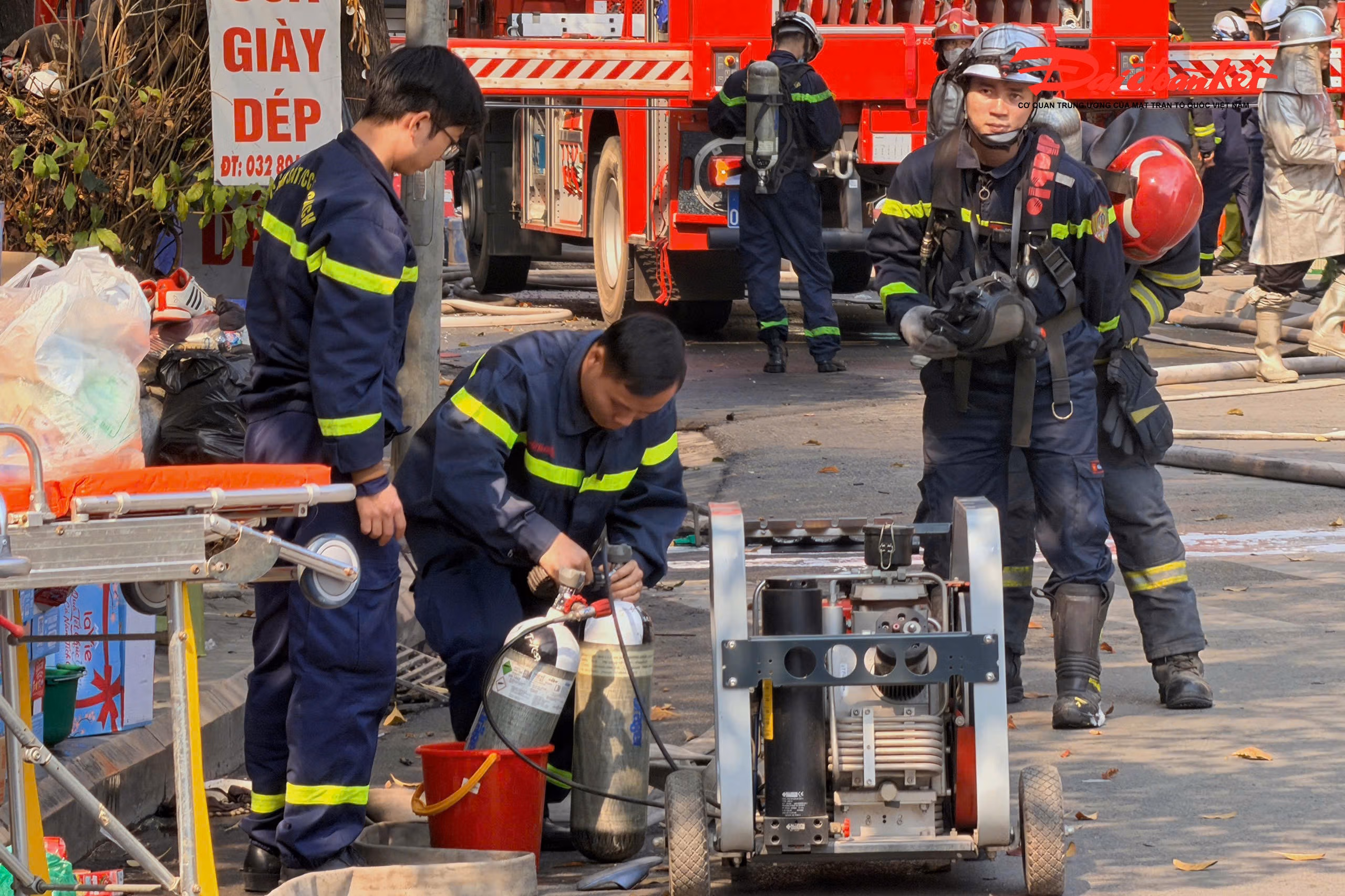 Hiện trường vụ cháy nhà 7 tầng trên phố Lê Lợi ở Hà Nội Thứ Năm 08/01/2026 14:07 (GMT+7) Theo ghi nhận của PV, khoảng 12h trưa 8/1, lực lượng chức năng vẫn đang tích cực chữa cháy, tìm kiếm các nạn nhân trong vụ hỏa hoạn xảy ra tại ngôi nhà cao 7 tầng, trên phố Lê Lợi, TP Hà Nội. Khoảng 7h45 ngày 8/1, tại ngôi nhà cao 7 tầng, 1 tum ở số 84 phố Lê Lợi, phường Hà Đông (TP Hà Nội) xảy ra cháy dữ dội, cột lửa kèm khói bốc cao hàng chục mét.Ngay sau khi tiếp nhận thông tin, Phòng Cảnh sát PCCC&CNCH Công an Hà Nội đã điều nhiều xe chữa cháy cùng hàng chục cán bộ, chiến sĩ, xe thang xuống hiện trường chữa cháy, tìm kiếm cứu nạn.Ngôi nhà xảy ra cháy là nhà ở kết hợp kinh doanh đồ điện.Để phục vụ công tác tìm kiếm cứu nạn trong ngôi nhà cháy, lực lượng chức năng sử dụng nhiều bình dưỡng khí, để các chiến sĩ PCCC có thể tiếp cận hiện trường còn nhiều khói, khí độc.Do căn nhà cháy cao tầng, bên trong nhiều thiết bị điện nên tới 12h cùng ngày, các lực lượng chức năng vẫn đang tích cực chữa cháy, tìm kiếm cứu nạn.Ông Bùi Huy Quang – Phó Chủ tịch UBND phường Hà Đông cho biết, thời điểm xảy ra cháy, trong ngôi nhà có 8 người. Chủ nhà do hoảng loạn nhảy từ tầng cao xuống và bị thương, đã được đưa đi cấp cứu. Bà Mai (sống tại nhà 46 phố Trần Hưng Đạo, phường Hà Đông) cho biết, khoảng 8h, khi bà đang ở trong nhà thì nghe thấy tiếng mọi người hô hoán chữa cháy. Chạy ra bên ngoài và nhìn thấy ngôi nhà số 84 phố Lê Lợi đang cháy lớn. Lửa bùng lên ở tầng 1 rồi nhanh chóng lan lên các tầng trên.Cũng theo bà Mai, khi phát hiện sự việc, các bảo vệ và tiểu thương của chợ Hà Đông đã chạy sang dập lửa nhưng không thành. Mọi người hoảng loạn gọi hai người đang ở tầng 1 của ngôi nhà bị cháy chạy ra ngoài. Một người phụ nữ kịp thời thoát được, còn người đàn ông nhảy từ tầng 5 xuống mái nhà hàng xóm và bị thương.Lực lượng PCCC cà CNCH mệt nhoài sau nhiều giờ chữa cháy.Hiện nguyên nhân vụ cháy đang được điều tra làm rõ. Lê Khánh