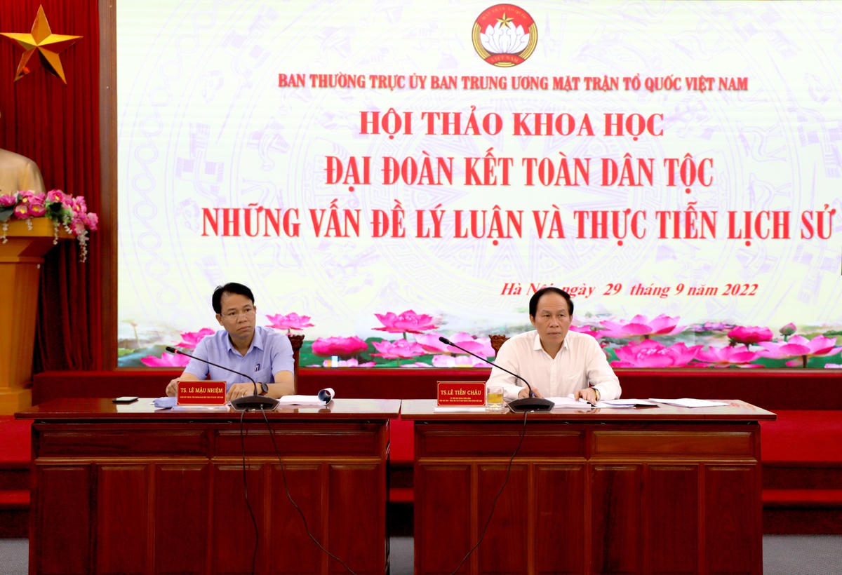 Phát biểu kết luận Hội thảo, Phó Chủ tịch – Tổng Thư ký Lê Tiến Châu khẳng định, các ý kiến đóng góp của chuyên gia, nhà khoa học tại Hội thảo đã đi sâu vào phân tích các vấn đề cơ bản của đại đoàn kết toàn dân tộc, mối quan hệ giữa đại đoàn kết toàn dân tộc với đoàn kết quốc tế, vai trò của Nhà nước trong xây dựng khối đại đoàn kết toàn dân tộc, các quan niệm về đoàn kết xã hội,…góp phần làm sáng tỏ thêm những vấn đề lý luận về đại đoàn kết toàn dân tộc và thực tiễn việc xây dựng và phát huy sức mạnh đại đoàn kết toàn dân tộc trong lịch sử để bổ sung, phát triển hệ thống lý luận của MTTQ Việt Nam, qua đó định hướng nội dung hoạt động của Mặt trận trong thời gian sắp tới.