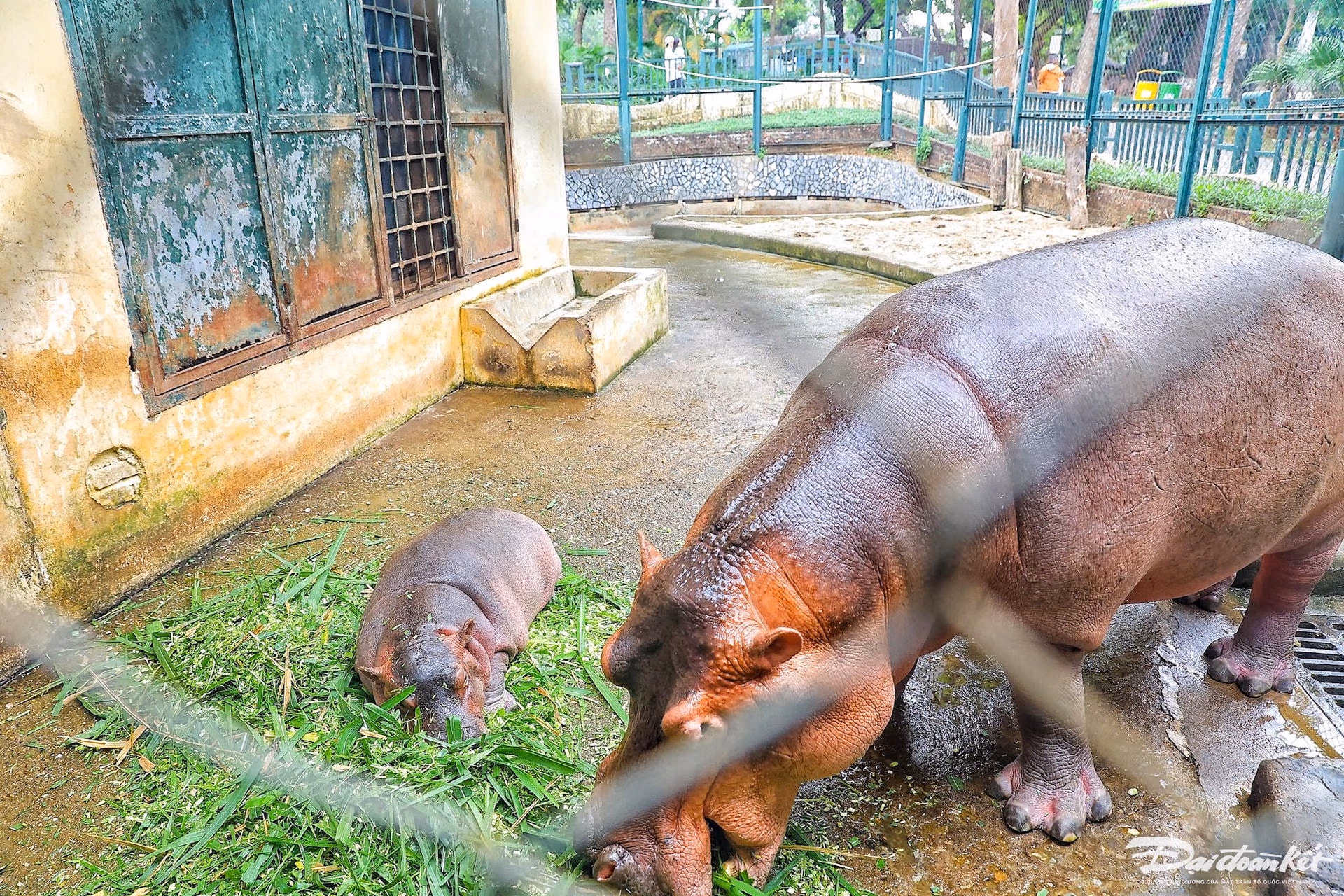 Hình ảnh hà mã con được sinh ra lần đầu tiên ở vườn thú Hà Nội Thứ Ba 29/10/2024 14:46 (GMT+7) Những ngày gần đây, du khách đến với vườn thú Hà Nội bất ngờ khi được nhìn thấy hà mã con dễ thương luôn lon ton chạy sau lưng hà mã mẹ. Những ngày gần đây hình ảnh về một chú hà mã baby, siêu dễ thương xuất hiện tại Vườn thú Hà Nội được lan tỏa trên mạng xã hội khiến nhiều người dân Thủ đô không khỏi bất ngờ và thích thú.Ông Nguyễn Công Nghiệp, Phó Tổng giám đốc Công ty trách nhiệm hữu hạn một thành viên Vườn Thú Hà Nội cho biết, trong thời gian vừa qua, vườn thú Hà Nội hiện trưng bày chăm sóc 3 cá thể hà mã cái. Trong đó, 1 cá thể hà mã được nhận về từ vườn thú Đại Nam vào ngày 21/12/2023, đã sinh một chú hà mã con rất là đáng yêu, vào ngày 23/7/2024."Khi mà hà mã con ra đời ở vườn thú Hà Nội, cũng là lần đầu tiên ở Hà Nội có hà mã sinh sản, chúng tôi đã chỉ đạo các bộ phận chăn nuôi ở khu chăn nuôi hà mã, chú trọng các công tác nuôi dưỡng và đặc biệt là công tác vệ sinh, tẩy trùng", ông Nguyễn Công Nghiệp, Phó Tổng giám đốc công ty chia sẻ.Theo ông Nghiệp, hiện tại quá trình chăm sóc nuôi dưỡng hà mã cái và hà mã con phát triển tốt, các biện pháp tăng cường chăm sóc theo được dõi 24/24h, từ theo dõi giảm mực nước trong bể xuống để cho hà mã mẹ và hà mã con được tiếp xúc cận với nhau cũng như được bú mẹ một cách tự nhiên và tốt nhất trong môi trường nước.Hai mẹ con được chăm sóc bổ sung các khẩu phần ăn dinh dưỡng tăng cường hàm lượng vitamin khoáng về cả chất và lượng để hà mã mẹ có đủ sữa và chất lượng sữa tốt nhất chăm sóc hà mã con.Hà mã con cũng ba tháng tuổi hiện phát triển tốt.Thời điểm hiện tại hà mã con đang bú sữa mẹ và đã bắt đầu chuyển sang tập chế độ ăn dặm.Khi mới đẻ ra hà mã con nặng 25kg, sau 1 tháng cân được 46kg, sau 2 tháng cân lại được 66kg, đến thời điểm này đã hơn 3 tháng, ước lượng hà mã con phải trên 70-80kg.Hình ảnh hà mã mẹ chơi đùa với hà mã con.Hà mã là loại động vật thường xuyên sống ở dưới nước.Nhân viên chăm sóc cho biết, bình thường 1 tuần 2 lần, họ sẽ thay nước trong bể, nhưng khi có thêm hà mã con, các nhân viên chăm sóc hà mã đã thay đổi việc thay nước hàng ngày vào buổi sáng, đảm bảo sạch sẽ.Hình ảnh 2 mẹ con hà mã đùa nghịch với nước.Nhiều em nhỏ thích thú khi nhìn thấy hà mã con. Lê Khánh