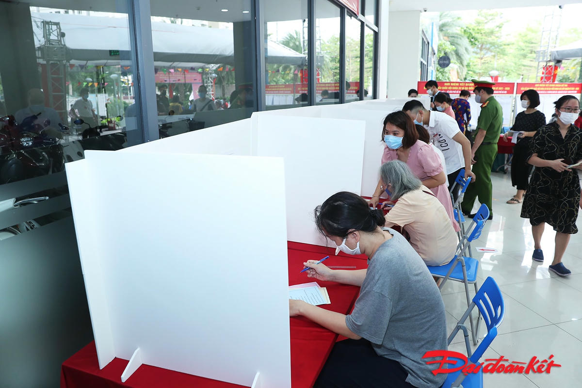 Tại điểm bầu cử, công tác chuẩn bị được triển khai chu đáo. Cử tri đã được Tổ bầu cử sắp xếp khu vực bỏ phiếu theo đúng quy định và thực hiện nghiêm nguyên tắc 5K của Bộ Y tế nhằm đảm bảo an toàn bầu cử, phòng chống dịch Covid-19.