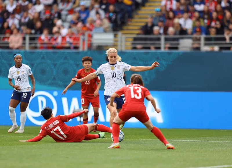 Theo CAND, trận đấu đầu tiên của Đội tuyển nữ Việt Nam tại vòng chung kết FIFA World Cup nữ 2023 đã khép lại, với nỗ lực đáng khen ngợi trước đương kim vô địch thế giới Mỹ. Thua với tỷ số 0-3 trước một tập thể từng 4 lần đăng quang tại đấu trường World Cup có thể xem là chấp nhận được. Toàn bộ các cầu thủ Việt Nam đã cố gắng hết mình, trong đó thủ môn Kim Thanh tạo điểm nhấn với pha cản phá thành công cú sút từ chấm 11m của huyền thoại bóng đá nữ thế giới, Alex Morgan.