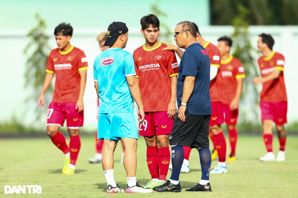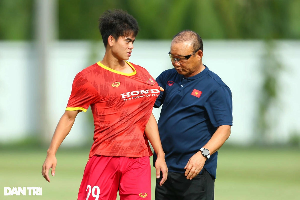 Khác với Quang Hải, Khuất Văn Khang chưa bắt nhịp được ngay với các đàn anh. Cầu thủ này được HLV Park Hang Seo và các trợ lý sửa lỗi khá nhiều trong buổi tập mới nhất.