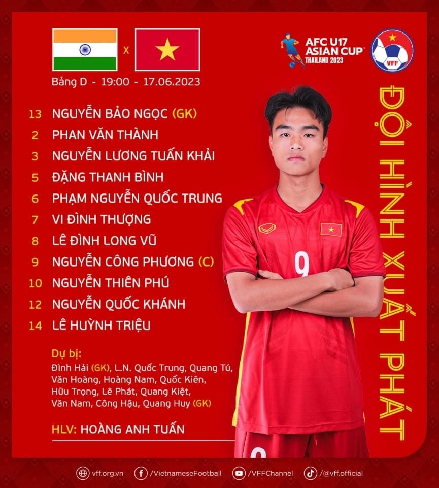 Theo NLĐ, trong ngày ra quân tại U17 Asian Cup, U17 Việt Nam có trận hoà 1-1 trước U17 Ấn Độ dù là đội có bàn thắng dẫn trước trong hiệp 1.