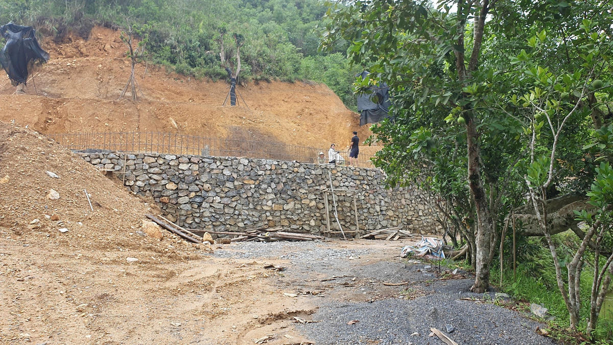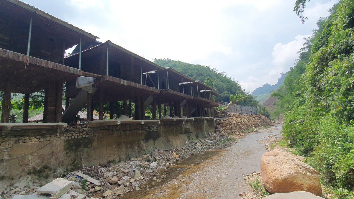Ghi nhận của PV Báo Đại Đoàn Kết vào thời điểm tháng 6, tại khu vực suối Láo (xóm Rằng, xã Cao Sơn) có một số hạng mục công trình kiên cố xây dựng ngay cạnh bờ suối Láo. Trong đó, có 2 ngôi nhà sàn đã hoàn thiện xong và đưa vào sử dụng, các công trình còn lại đang được công nhân tiếp tục xây dựng mới, dần đi vào hoàn thiện.
