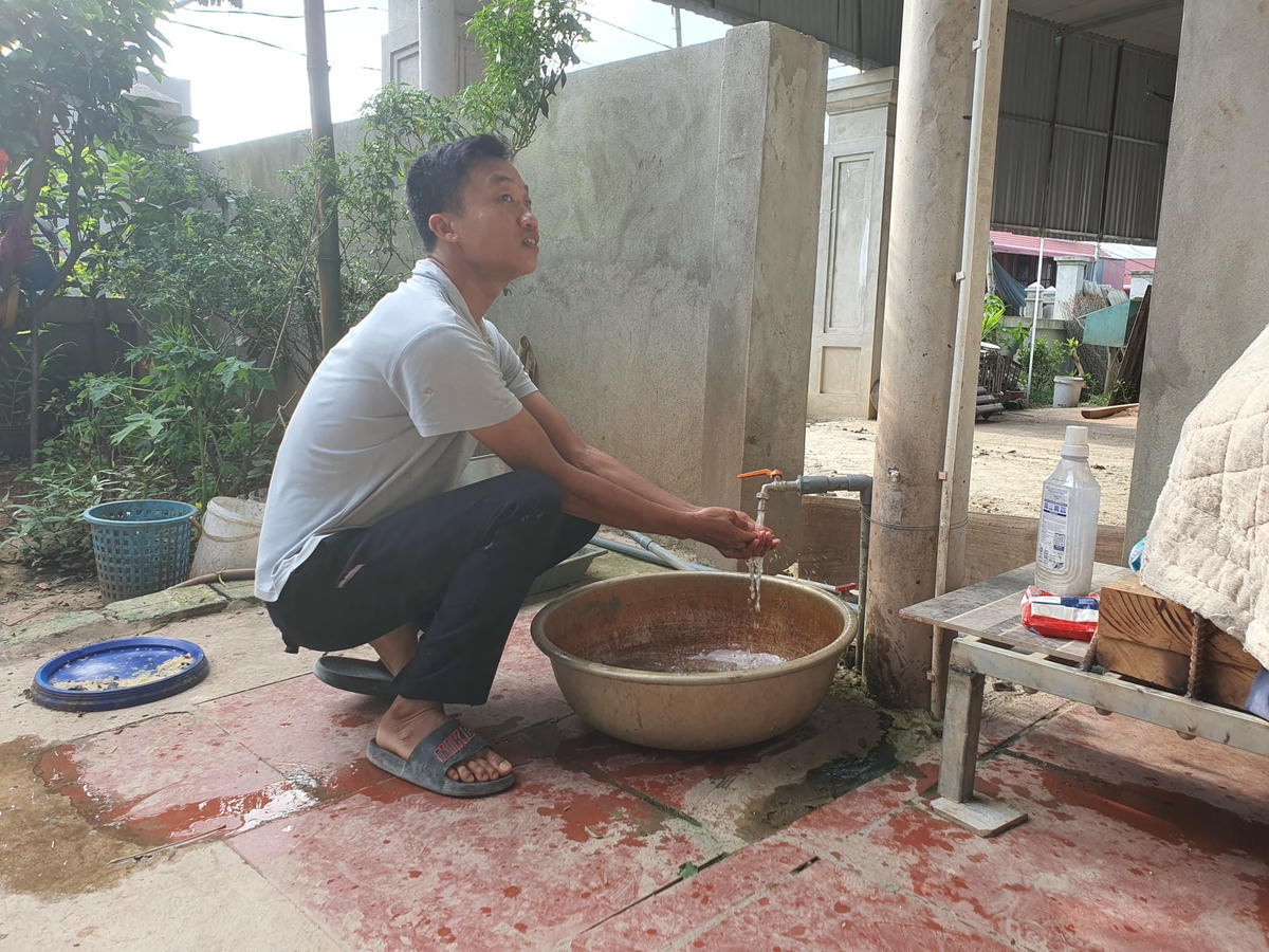 Về vấn đề nước sạch, ông Thỏn thông tin, lúc đầu khu TĐC được đầu tư khoan 1 giếng nước để làm bể tập trung. Nhưng sau đó, giếng khoan này không có nước nên cũng đã bỏ đi, vì thế người dân phải tự khoan giếng để lấy nước dùng. Các hộ dân ở khu TĐC đều phản ánh là nước giếng không sạch, có đá vôi, sử dụng không đảm bảo vệ sinh, các giếng khoan ở khu vực khác cũng có chung tình trạng như vậy.