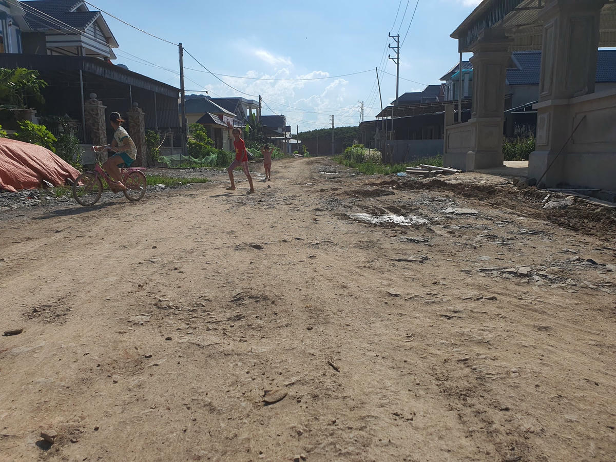 Căn nhà đầu tiên PV đến thăm là gia đình anh Bùi Văn Tư (42 tuổi, khu TĐC xóm Nhụn), chỉ tay về con đường đất dẫn vào khu TĐC, anh Tư bộc bạch, gia đình tôi chuyển về khu TĐC này từ giữa năm 2021, lúc vận động người dân di dời về đây, chủ đầu tư hứa sẽ hoàn thiện đầy đủ cơ sở hạ tầng như đường điện, đường bê tông, hệ thống cống rãnh… người dân nghiệm thu thì mới chuyển đến ở. Thế nhưng từ khi tôi xây nhà xong và ở từ đó đến giờ thì mới chỉ có điện dùng, còn đường bê tông, cống rãnh, nước sạch thì chưa thấy đâu.
