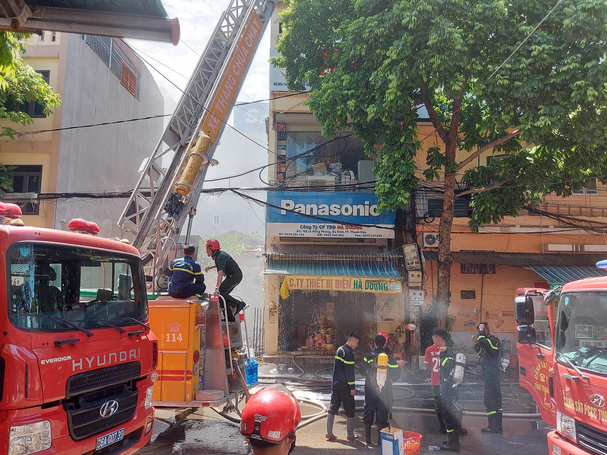 Thông tin ban đầu, vụ cháy xảy ra vào khoảng 8h30 sáng ngày hôm nay (5/7) tại căn nhà 3 tầng thuộc Công ty thiết bị điện Hà Dương (có địa chỉ tại số 155 đường Lê Hồng Phong, phường Ba Đình, TP Thanh Hóa). Vị trí đám cháy cách trụ sở Công an tỉnh Thanh Hóa khoảng 100m.