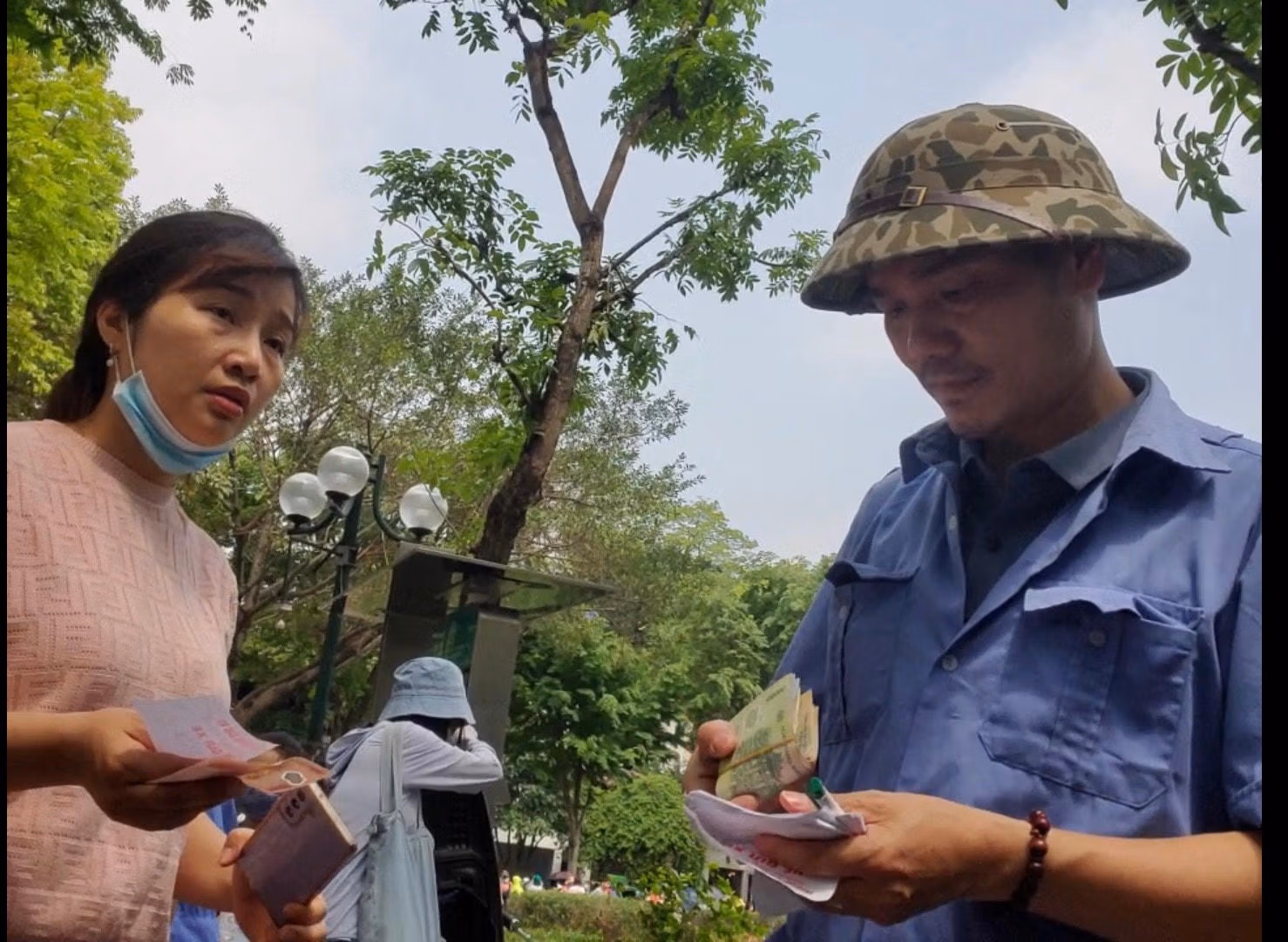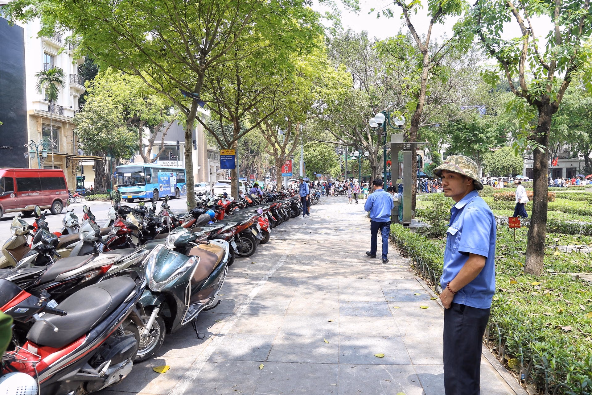 Do đó, tại khu vực Nhà hát lớn Hà Nội, hàng nghìn người dân đã chờ đợi trải nghiệm du lịch Hà Nội bằng xe buýt 2 tầng. Nhận thấy, cơ hội kiếm tiền từ việc lượng khách có nhu cầu gửi xe tăng mạnh nhiều người tự xưng là bảo vệ của điểm trông giữ xe trên vỉa hè đối diện số 3 phố Hai Bà Trưng.