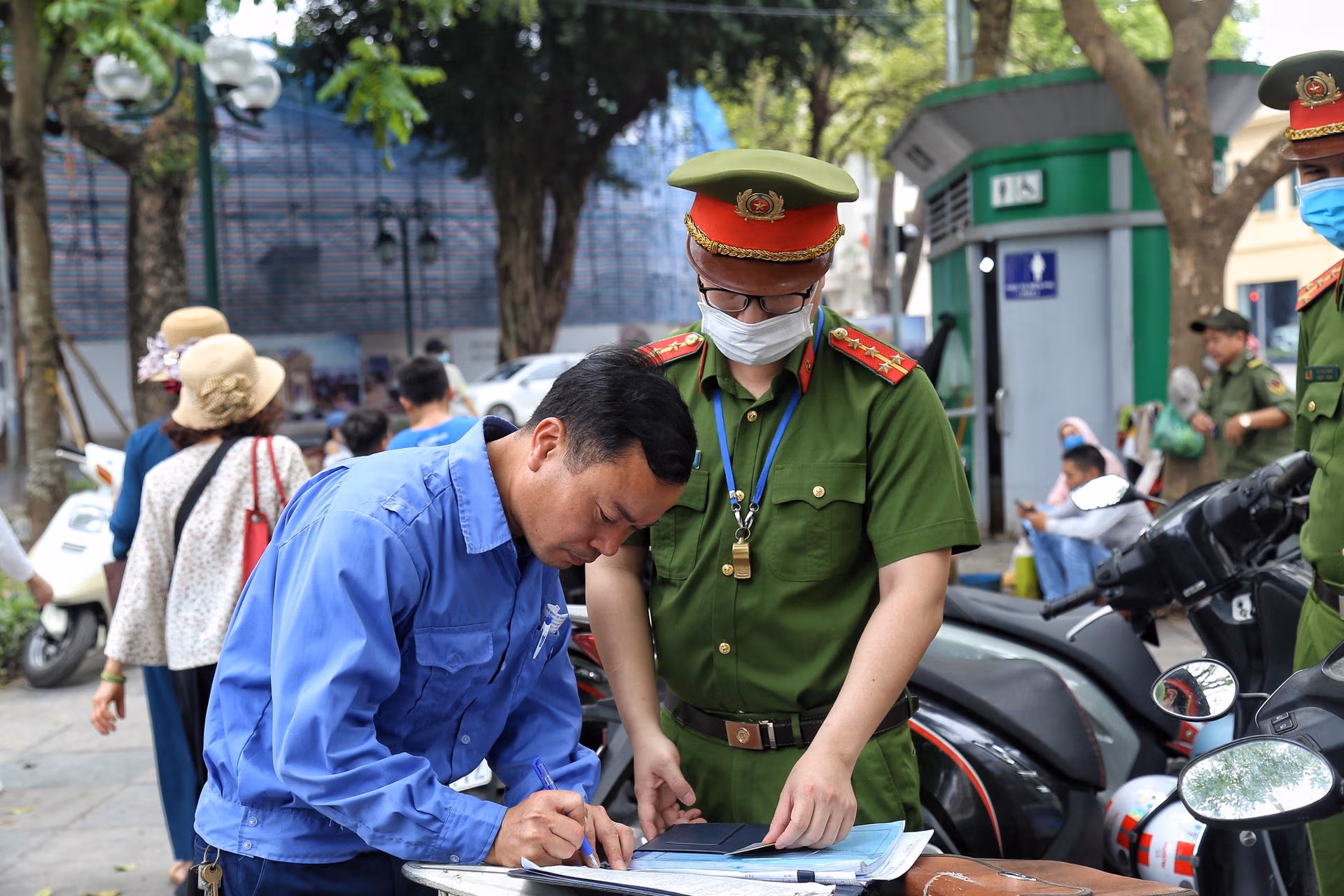 Theo đó, Đội Cảnh sát trật tự quận Hoàn Kiếm đã lập biên bản đối với anh Trần Văn Thao với lỗi vi phạm chiếm dụng vỉa hè phố từ 0,5 m2 đến 10 m2 làm nơi trông giữ xe.