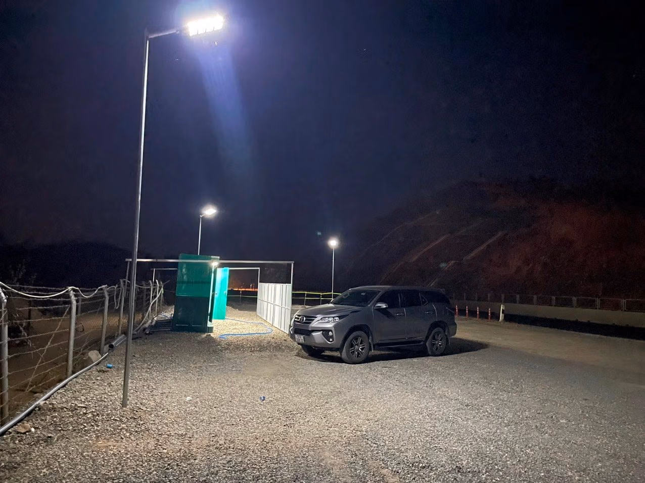 Tính đến chiều 23/4, đơn vị thi công đã hoàn thành công tác lắp đặt 4 container nhà vệ sinh và container nhà nghỉ nhân viên (cả 2 bên). Các mũi thi công hoàn thiện phần nền nhà, đang chuẩn bị lắp đặt phần mái che, thảm nhựa nền đường, sơn làn dừng đỗ bãi đỗ xe.