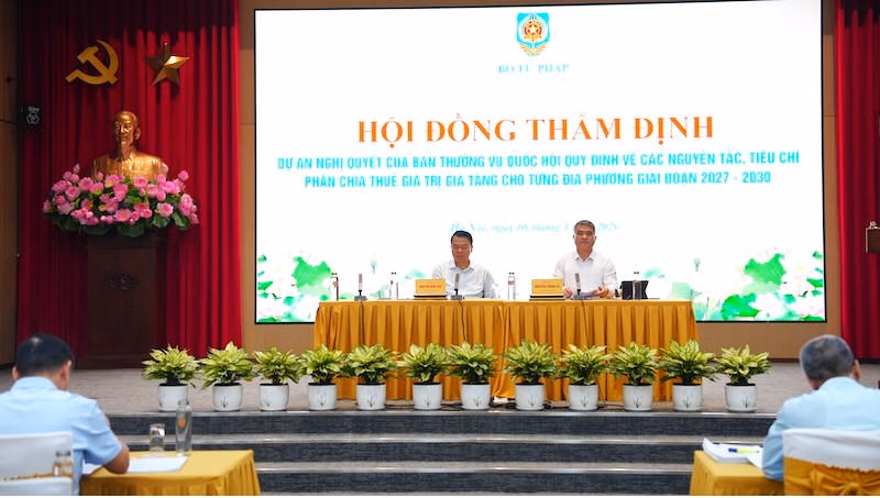 Chiều 6/4, Thứ trưởng Bộ Tư pháp Nguyễn Thanh Tú đã chủ trì Hội đồng thẩm định Dự án nghị quyết của Ban Thường vụ Quốc hội quy định về các nguyên tắc, tiêu chí phân chia thuế giá trị gia tăng (GTGT) cho từng địa phương giai đoạn 2027-2030. Cùng dự có Thứ trưởng Bộ Tài chính Nguyễn Đức Chi - đại diện cơ quan soạn thảo.