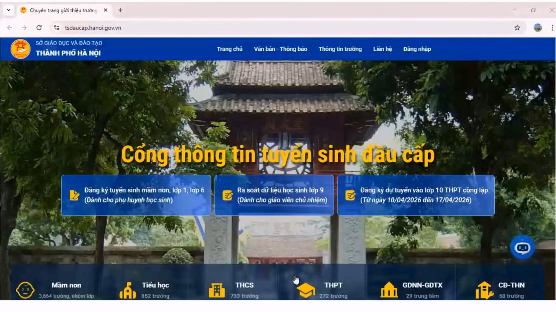 Từ ngày 10 đến 17/4, học sinh lớp 9 trên địa bàn TP Hà Nội chính thức đăng ký dự tuyển vào lớp 10 THPT công lập năm học 2026 - 2027 theo hình thức trực tuyến trên Cổng tuyển sinh đầu cấp.