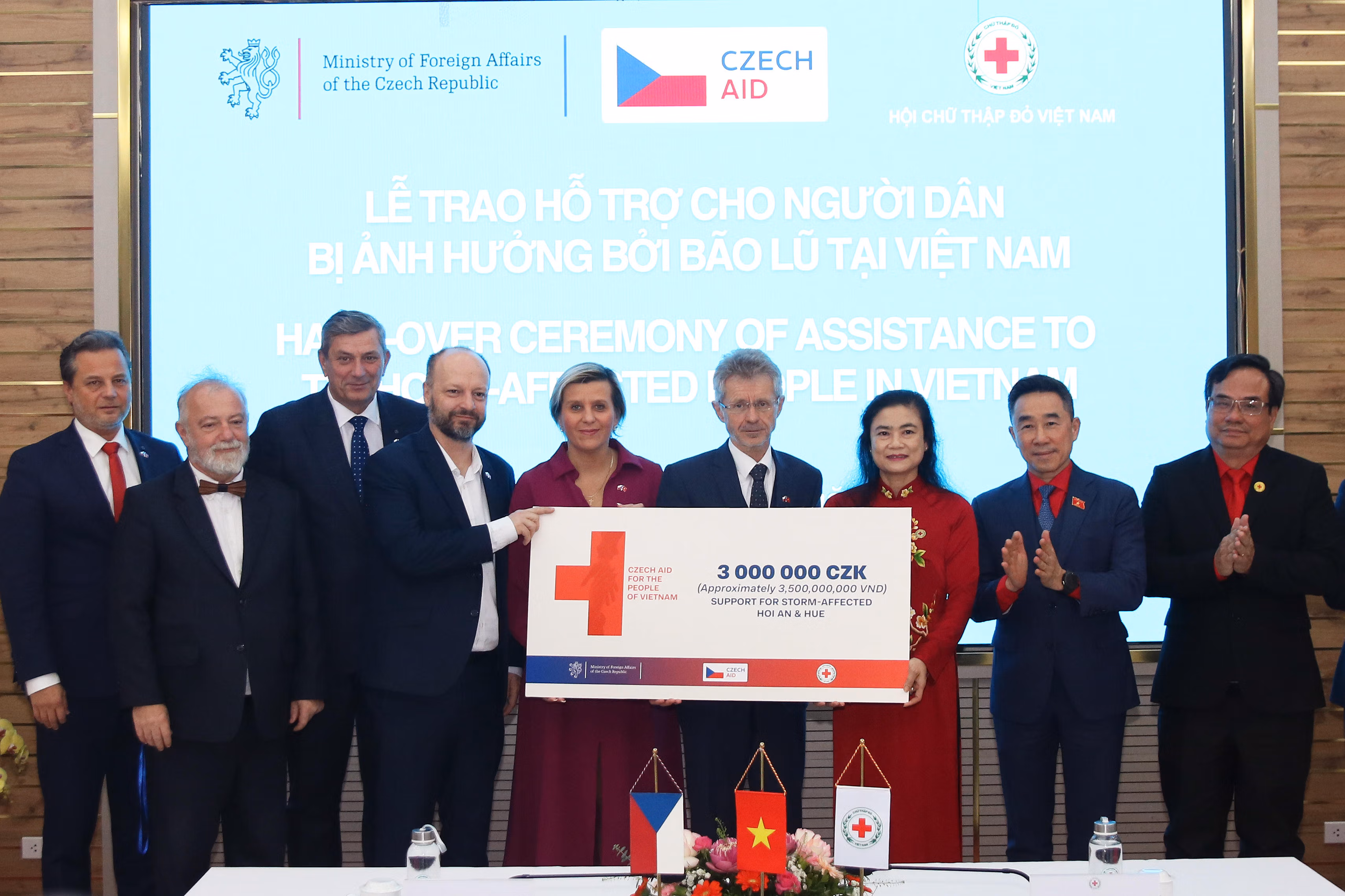 Chiều 20/11, tại Hà Nội, Chủ tịch Thượng viện Quốc hội Cộng hòa Séc Milos Vystrcil và Đoàn đại biểu cấp cao của Thượng viện Cộng hòa Séc đã đến thăm và trao khoản hỗ trợ tượng trưng trị giá 3 triệu CZK (tương đương 3,5 tỷ đồng) cho Trung ương Hội Chữ thập đỏ Việt Nam nhằm góp phần khắc phục hậu quả bão lũ năm 2025 tại Hội An và thành phố Huế.