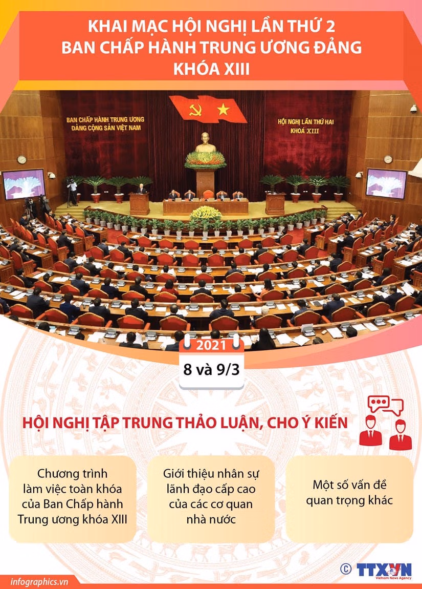 Sáng 8/3, Hội nghị lần thứ 2 Ban Chấp hành Trung ương Đảng khóa XIII khai mạc trọng thể tại thủ đô Hà Nội.