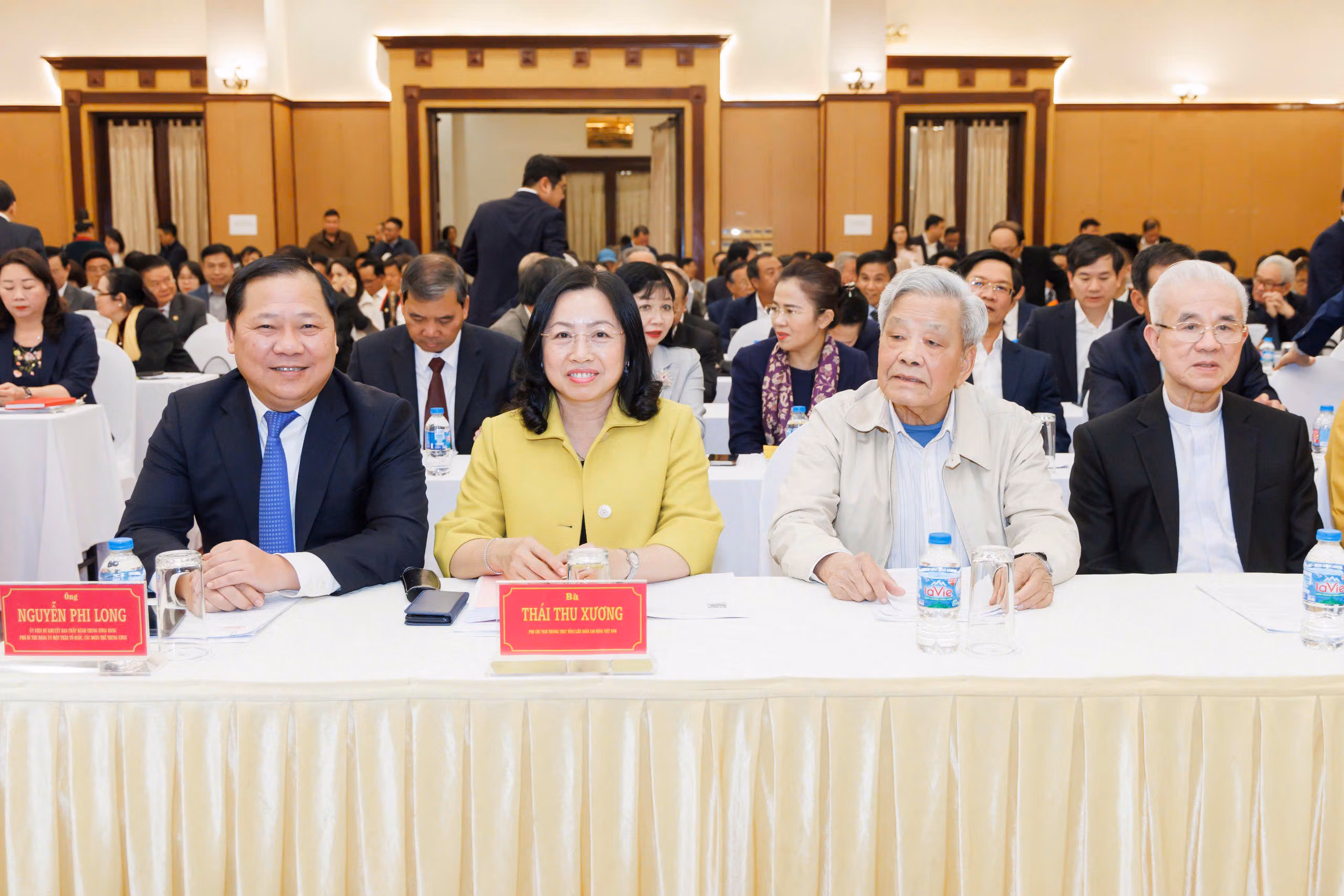 Tham dự Hội nghị có bà Bùi Thị Minh Hoài - Ủy viên Bộ Chính trị, Bí thư Trung ương Đảng, Bí thư Đảng ủy MTTQ, các đoàn thể Trung ương, Chủ tịch UBTƯ MTTQ Việt Nam; bà Hà Thị Khiết - nguyên Bí thư Trung ương Đảng, nguyên Trưởng ban Dân vận Trung ương; Phó Chủ tịch không chuyên trách UBTƯ MTTQ Việt Nam; bà Nguyễn Thị Doan - nguyên Phó Chủ tịch nước, Phó Chủ tịch không chuyên trách UBTƯ MTTQ Việt Nam, Chủ tịch Hội Khuyến học Việt Nam; ông Nguyễn Phi Long - Ủy viên dự khuyết Trung ương Đảng, Phó Bí thư Đảng ủy MTTQ, các đoàn thể Trung ương; ông Nguyễn Mạnh Hùng - Phó Chủ nhiệm Ủy ban Kiểm tra Trung ương Đảng.